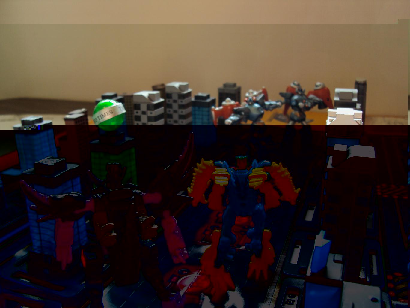 Fires_Of_Inferno wrote:I just noticed that the Legends class Classics Trypticon and Transformers Prime Twinstrike figures are just the right size to be in scale with my Monsterpocalypse figures. So here's a show down between Trypticon and Twinstrike against Defender-X and Sky Sentinel.
