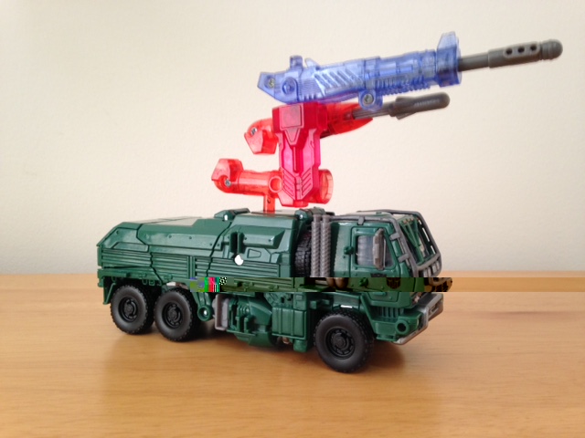 I used the guns from Energon Prowl, Arcee, and Signal Flare to assemble the cannon. So you could say I hand-made it.