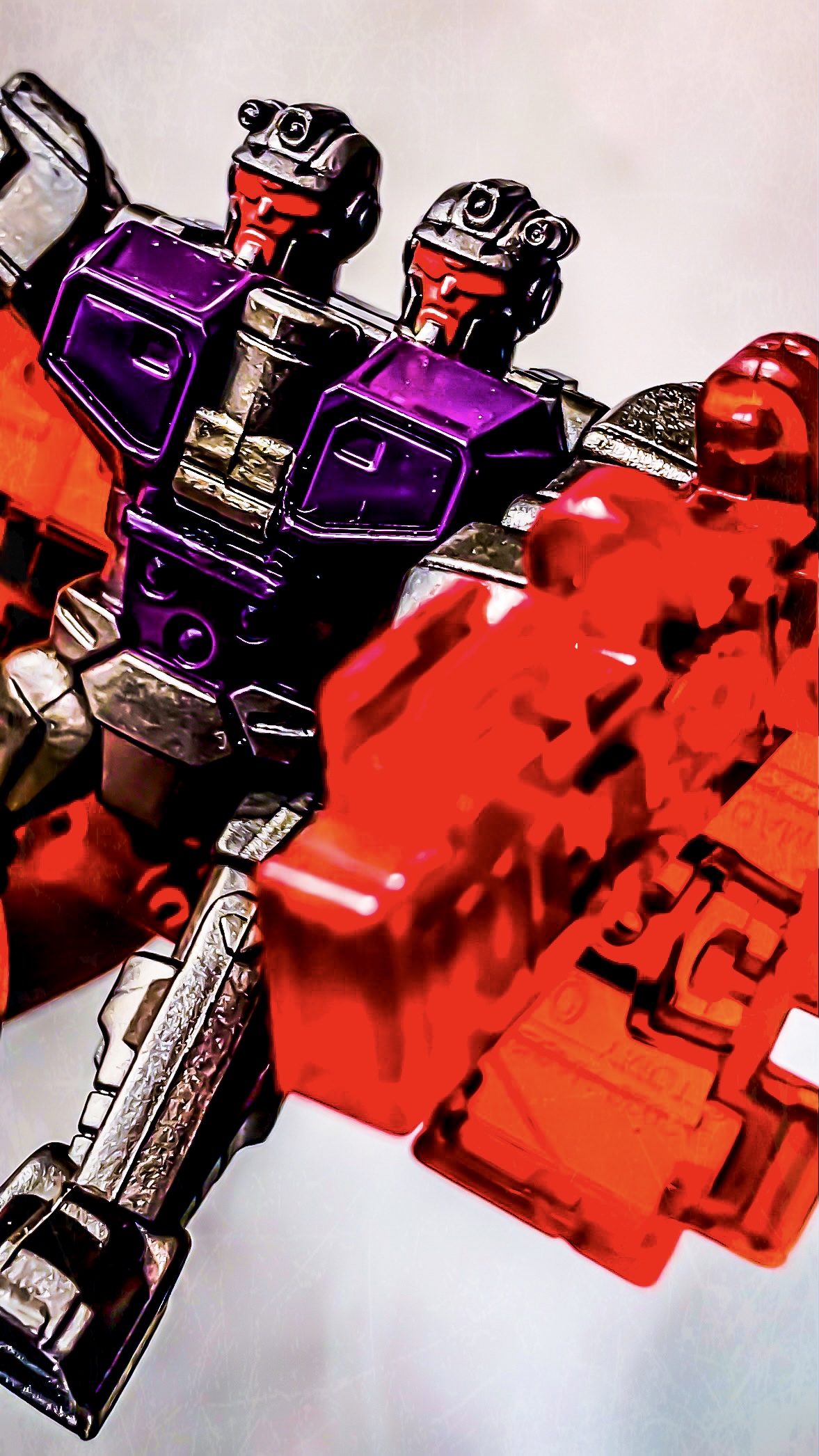 I have seen some pics comparing him to Mastermind Creations’ Tyrantron — I can see the similarities, and if I had all the monies and free shelf space, I’d add him to the collection too! Tyrantron is like an MP, and his price reflects that — but he’s still cheaper than the average Takara MP.