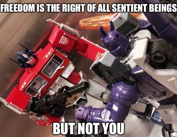 carytheone wrote:I'm OK with that. It seems to be the logical path they've set up. Someone's got to be the bad guy. Even though I cut my teeth on G1, I'm way more attached and invested in the IDW lore of the current series. For the most part, I default to it for my TF history.bodrock wrote:Whenever I see something that makes me think "MURICA", I also think of the World Police's theme....