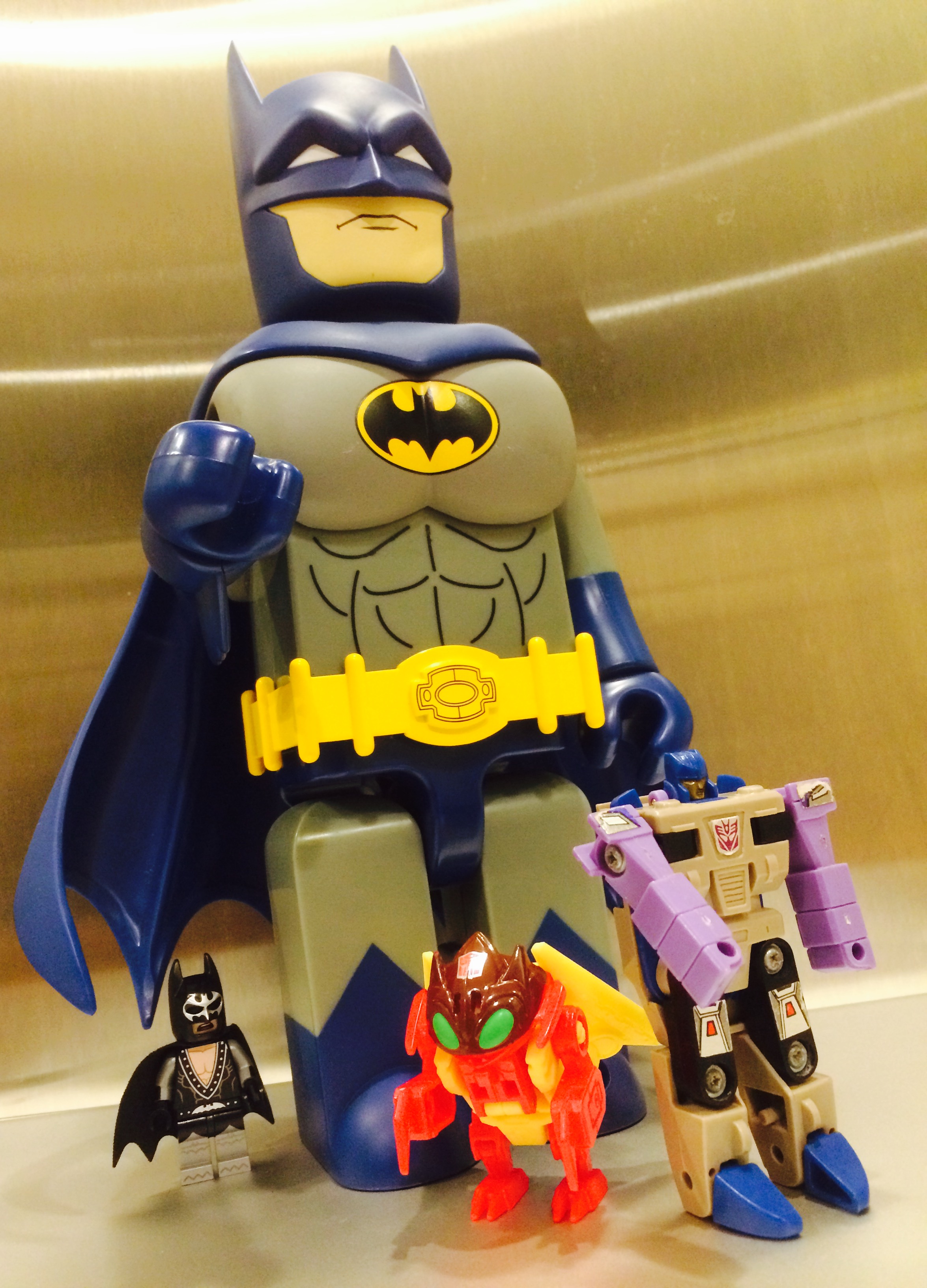 Finally, the only Mega Pretender on my list has arrived: Thunderwing. I never read about his quest for the Matrix or knew who he was until I embarked on my PretenderQuest, but I think of him as an intelligent, charismatic, and brooding master of deception, espionage and advanced weaponry.Upon closer examination and transformation, his colors reminded me of my favorite DC hero: Batman. My next thought was Robin...and the Transformers Dynamic Duo was born!