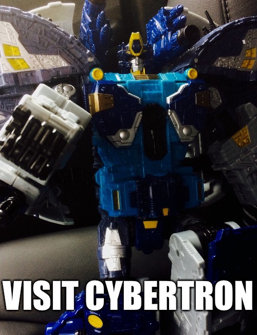I went to my favorite vintage toy store and scored this loose and incomplete Cybertron Primus for $7.99. He doesn't have his feet or accessories, but he's still great fun to pose.He does "planet" better than my Unicron, but...
