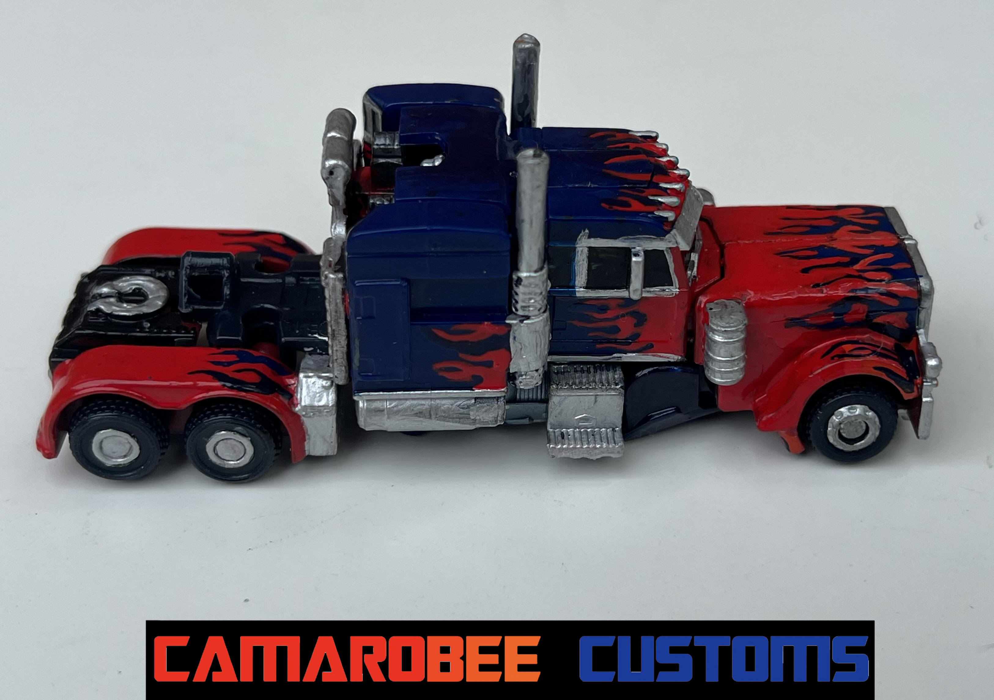 Despite being released in the BB toyline, this figure is modeled after AOE's Evasion Mode Optimus Prime, making it our only legends class figure made for that movie! I went for a screen accurate look with the weathered tan alt mode, with faded red and blue that appears in robot mode. I did some modding as well by carving the hole in the grill we see on screen!