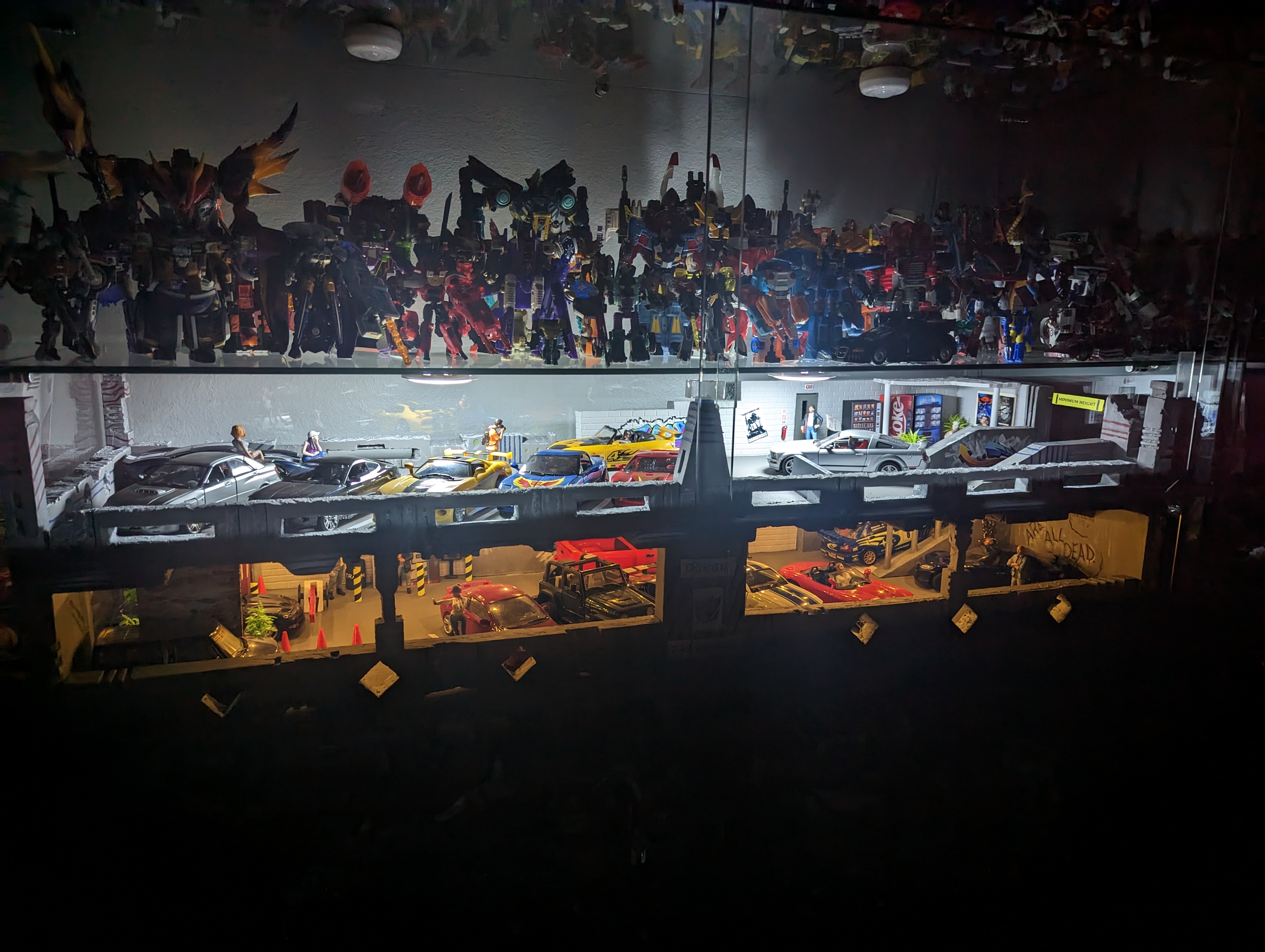 My final shots of my parking garage diorama. I put the new puck lights above the upper level and added the additional figures on the ground floor. Those would be the couple sitting in the corvette, the two to the right of the ticket booth, the girl doing a selfie, and the one by the exit door. All in all this is close to being my favorite of the four i have made at this point. Again a lot more detail put into this than I planned but without it, it would just look simple and nothing exciting to look at.