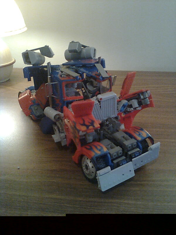 Optimus Prime hand-made and own design, made with pieces of plastic, screws, parts of other toys, appliances, etc.. The head was accomplished using another head of a toy of Optimus.