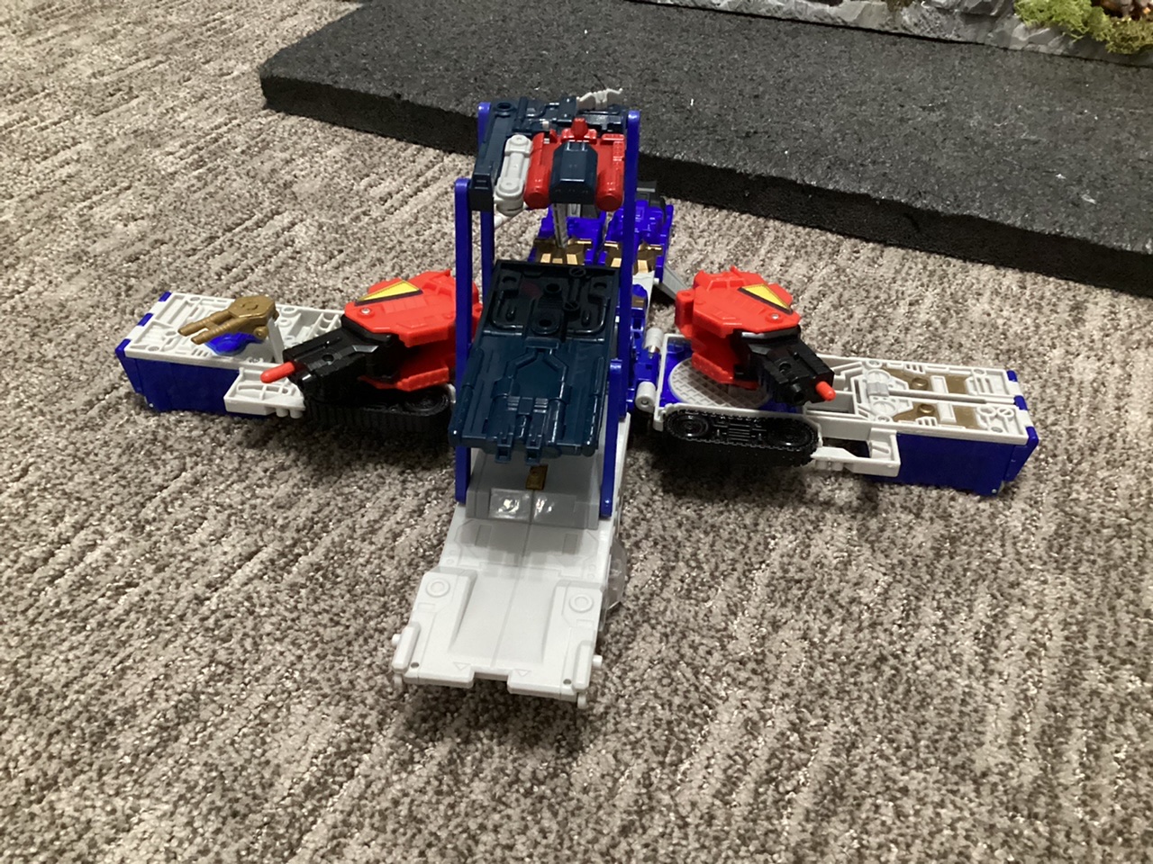 Since i was pulling these guys out i thought i would snag a couple photos of them in their combined modes.    I forgot out tall he is was with all three combined.   Then the other photo is just with Overload and OP.   Not pictured but messing around with Overload, besides the base mode you can combined him to the lower half of OP’s trailer/legs.  He is more goofy looking than anything.