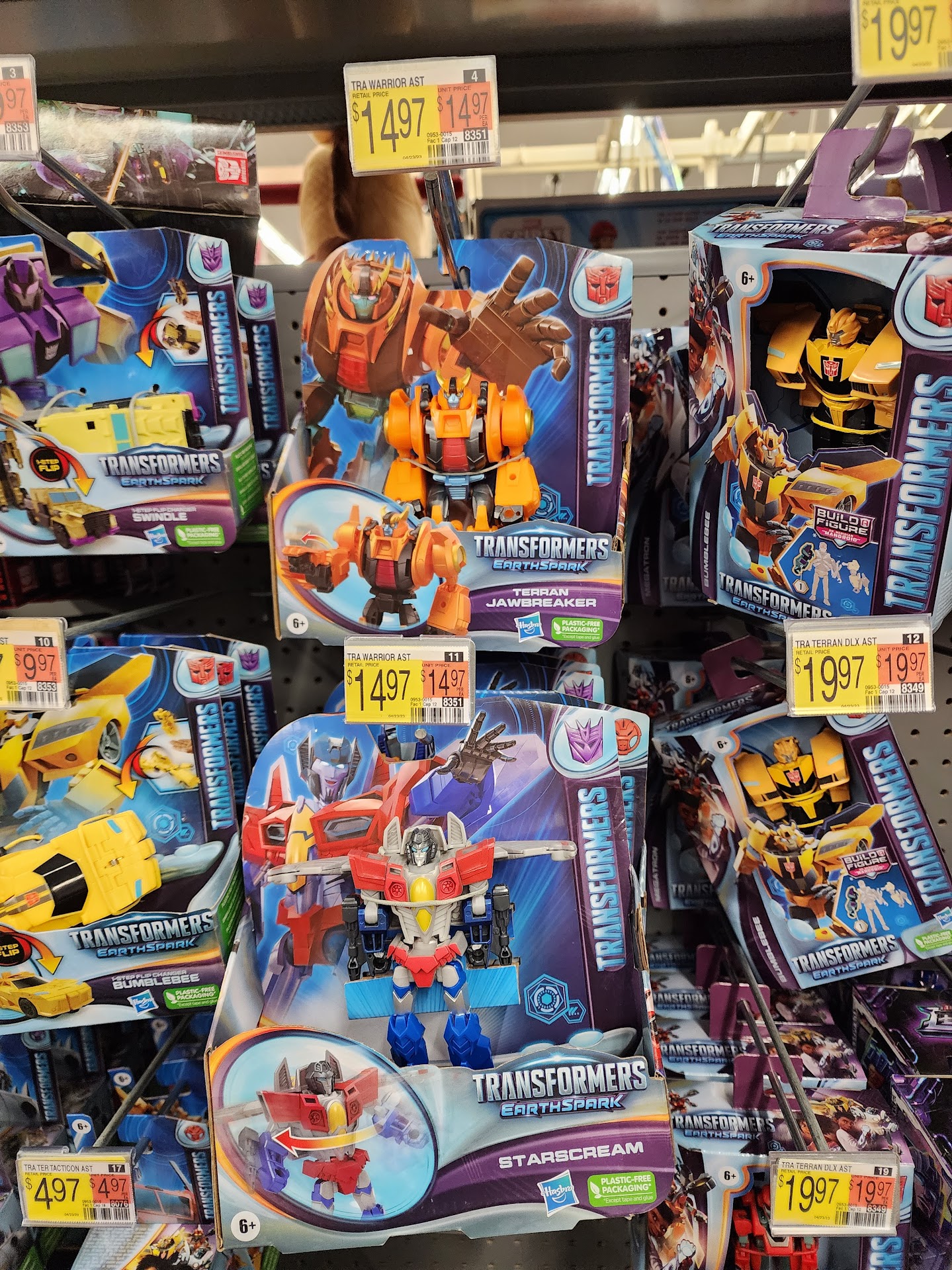 While Jawbkreaer has yet to choose his alt mode in the Transformers Earthspark show, his spoilerific toy is being found in the US. Fellow Seibertronian Emerje found it in a Walmart in Maine. Starscream is part of the same wave of warrior class toys.