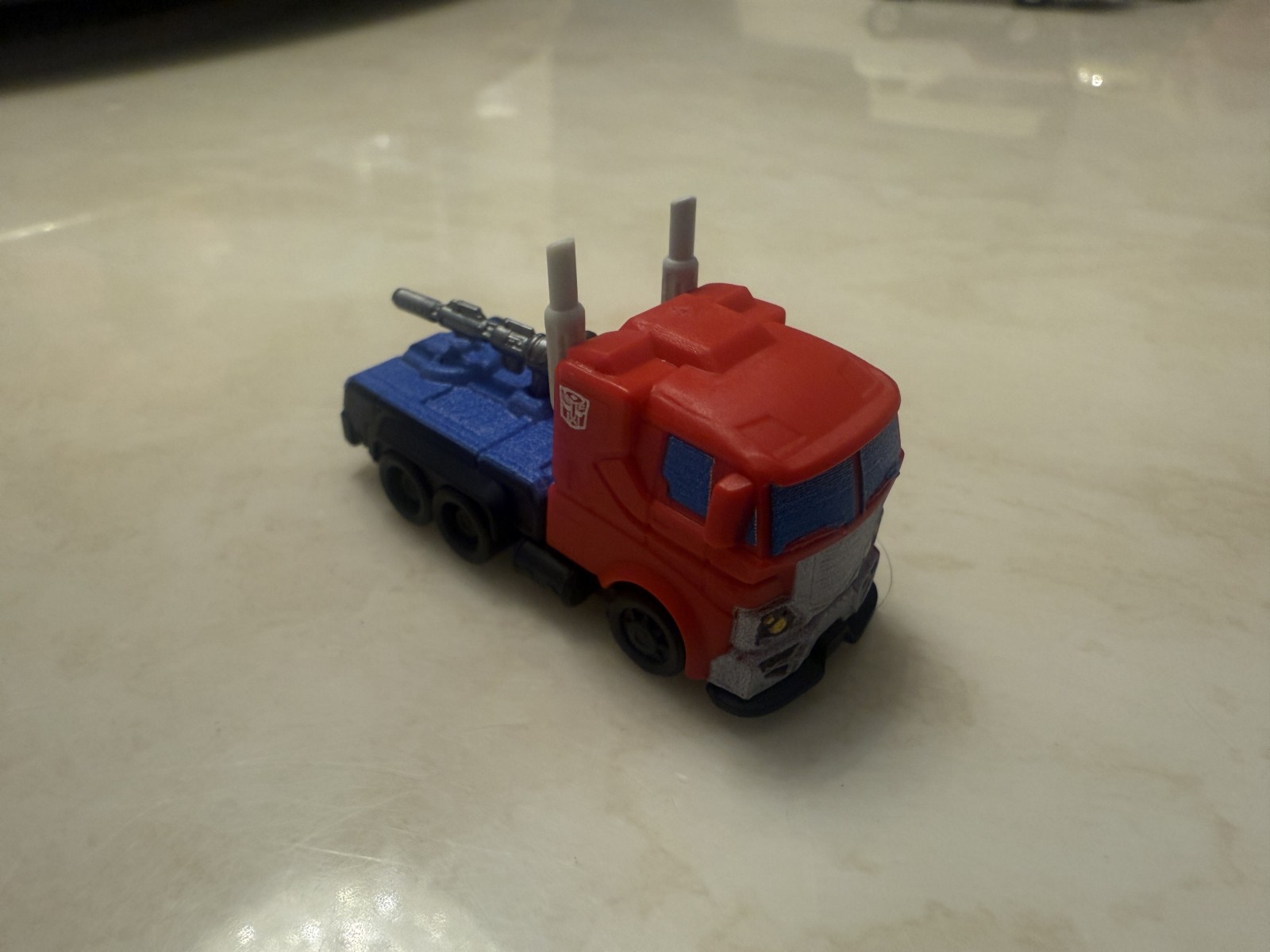 The toys are quite detailed though, amd have more paint and parts than the toys found in Kinder Eggs. Below are images of Optimus in both his robot and alt mode as well as Megatron’s tank mode. There is also an image of the entire assortment with a golden Bumblebee as the chase model. A hot wheels car is added to an image for scale. There is also a video review.