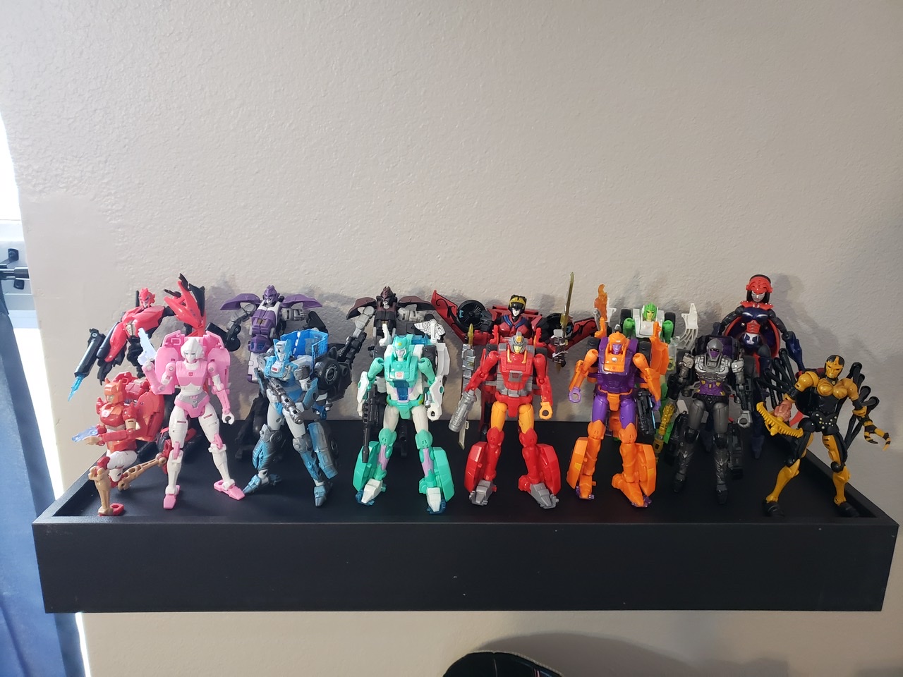 Trying to decide what to display within the cases or on a floating shelf has been a minor dilemma. I have been thinking about displaying all my female bots and cons together on a shelf of some kind. Bought a floating shelf from Menards and got it installed yesterday. Very simple to do. The biggest part is making sure it is level otherwise a piece of cake to install.