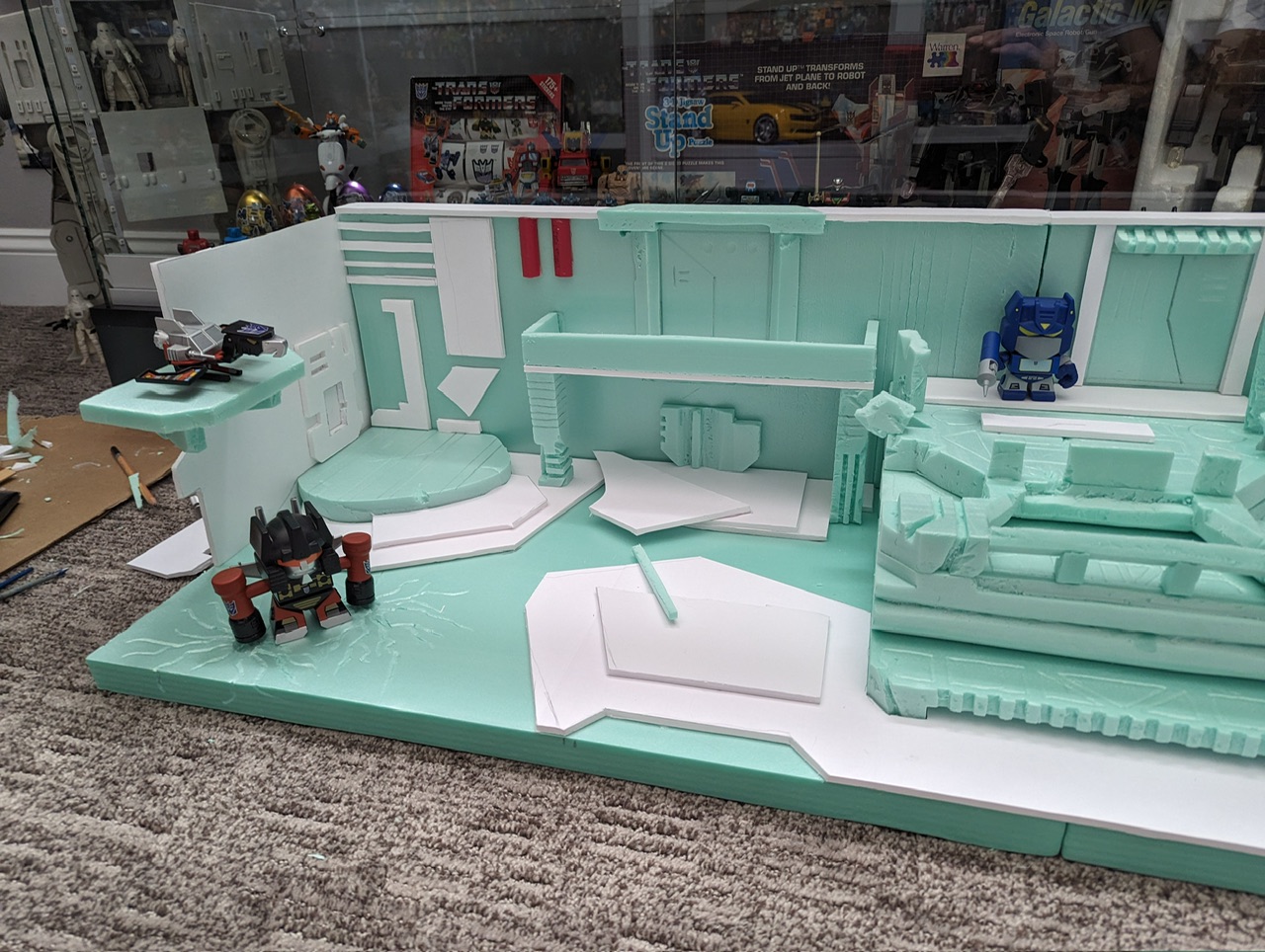 A small update on my Loyal Subjects diorama. I worked on the center section piece; trying to get the different levels i was wanting so that each figure can be seen. One character i dont have is Soundwave. He will most likely go the left of Bumblebee and Shockwave will go to the back row.