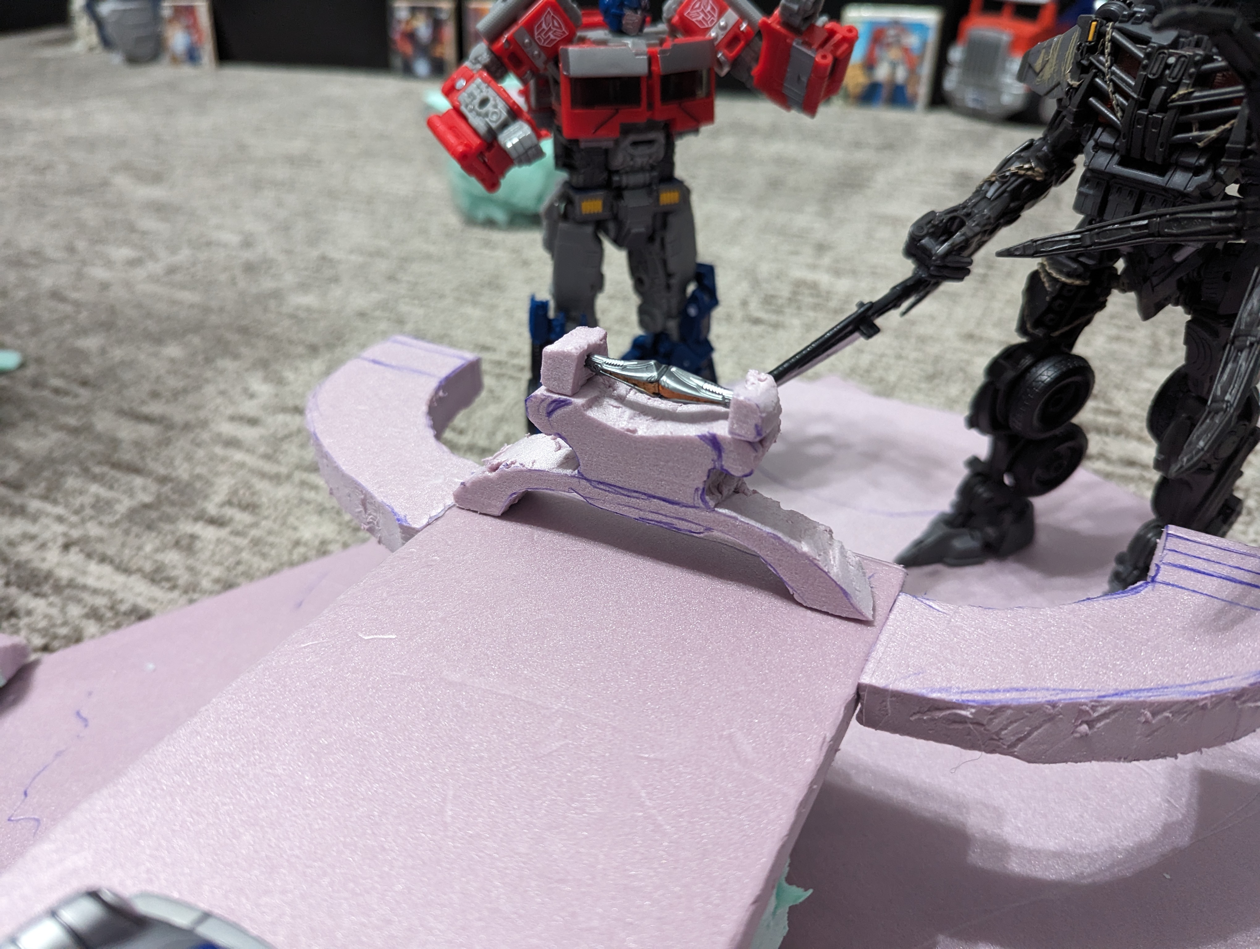 Then the one photo of Primal and Battletrap, i have them close to where i want them. I was trying to replicate that scene where they clash. Again not perfect but happy with how i have them supported off the ground.