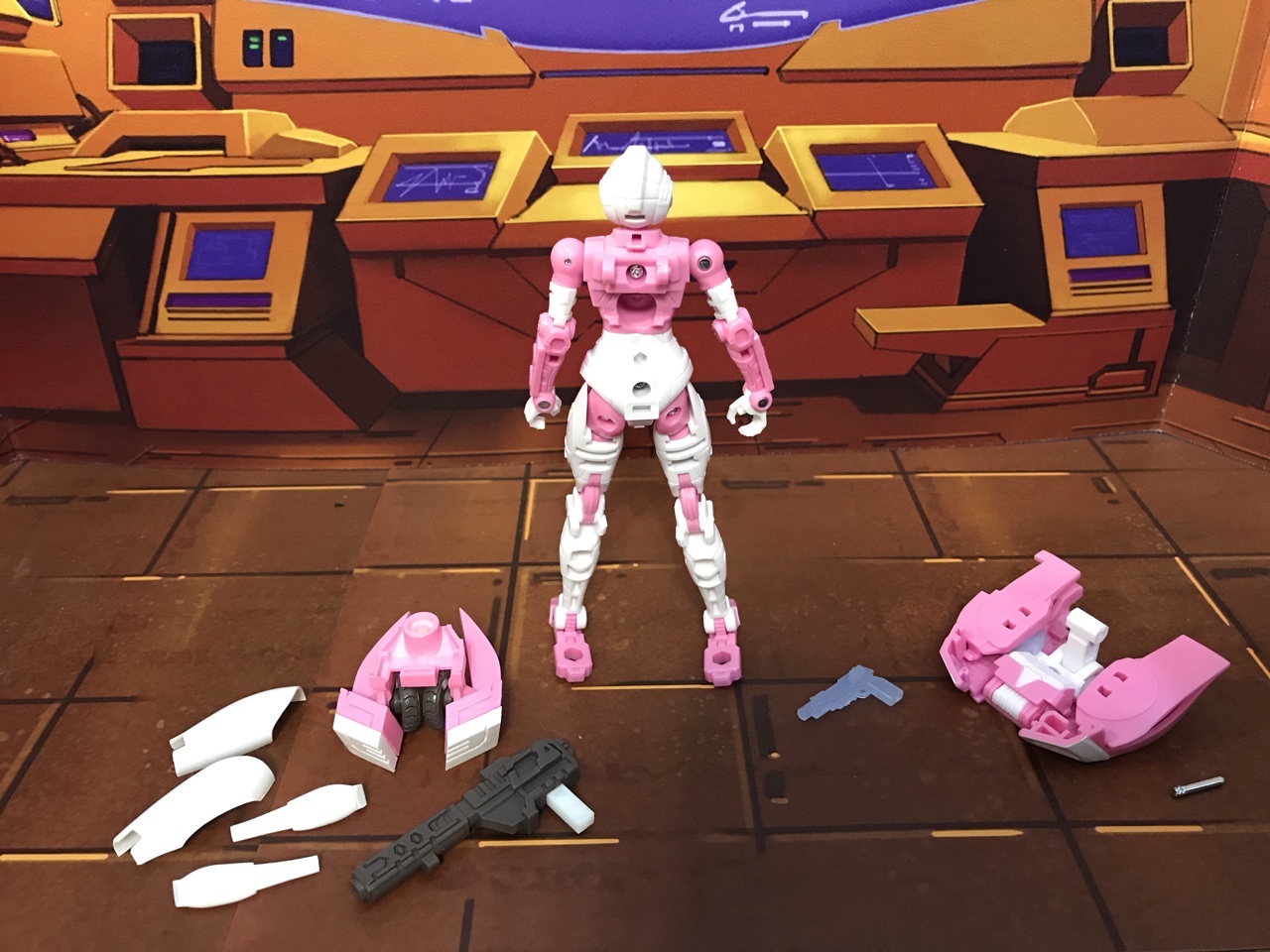 My latest upgrade purchase is for Siege Arcee, from 3D DIY. With this kit, you have to remove the pin on the back to remove basically the front end of her car mode. That wasn’t too hard, just take your time with it.