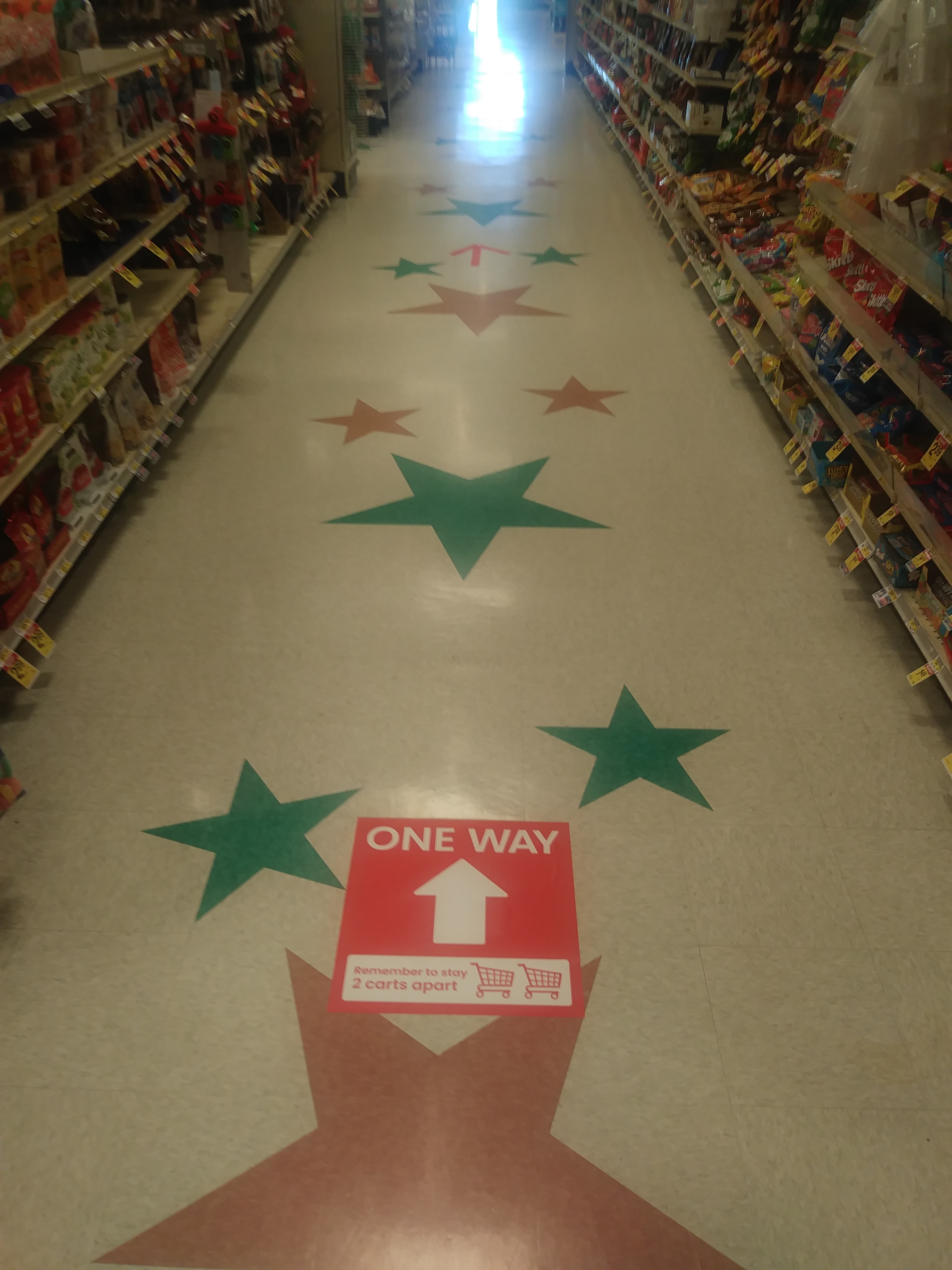 Things are tightening up here. Walmart only has one single entrance open, and even that is separated into Enter Only and Exit Only (those "Enter Here" signs finally get some attention). Above that, the country judge is endorsing we all wear masks when out in public. My better half is the creative type, so: