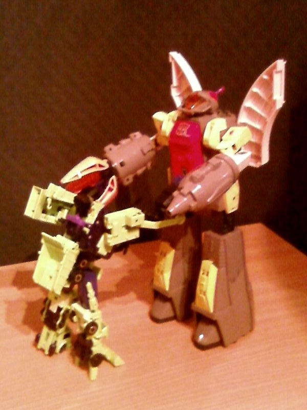 :-? I've been agonizing about whether I should get this set and I finally did out of sheer curiousity because they look virtually identical to the original track parts. He looks good going head to head with the upgraded Devastator: