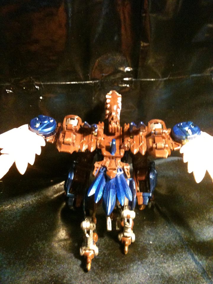 An original creation. From the Universe where Dinobot and AirRazor were kidnapped by aliens and transformed into DinoHawk. The head of this figure was molded and modified to look like Dinobot's face, and was grafted with Raptor parts. Not sure if DinoHawk or AirRaptor is the name I want to go with, but this figure also has an uncanny resemblance Dinobus Prime from the fanfic 'Myth Wars.'