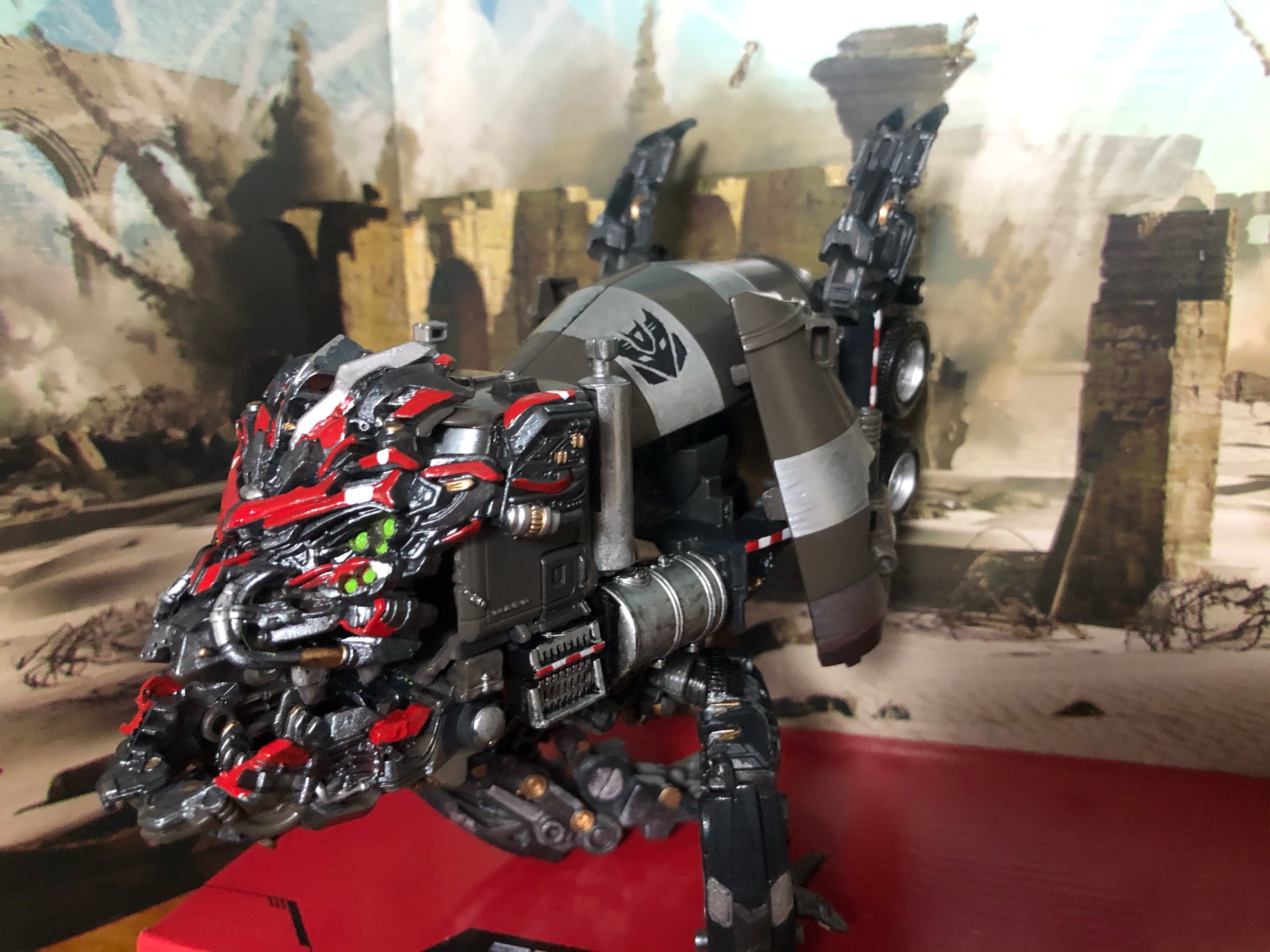 UPDATE: For this gallery update, I refined the paint work for the eyes peeking through the helmet, and added the silver trim around the tail lights like I did for DOTM Bumblebee!