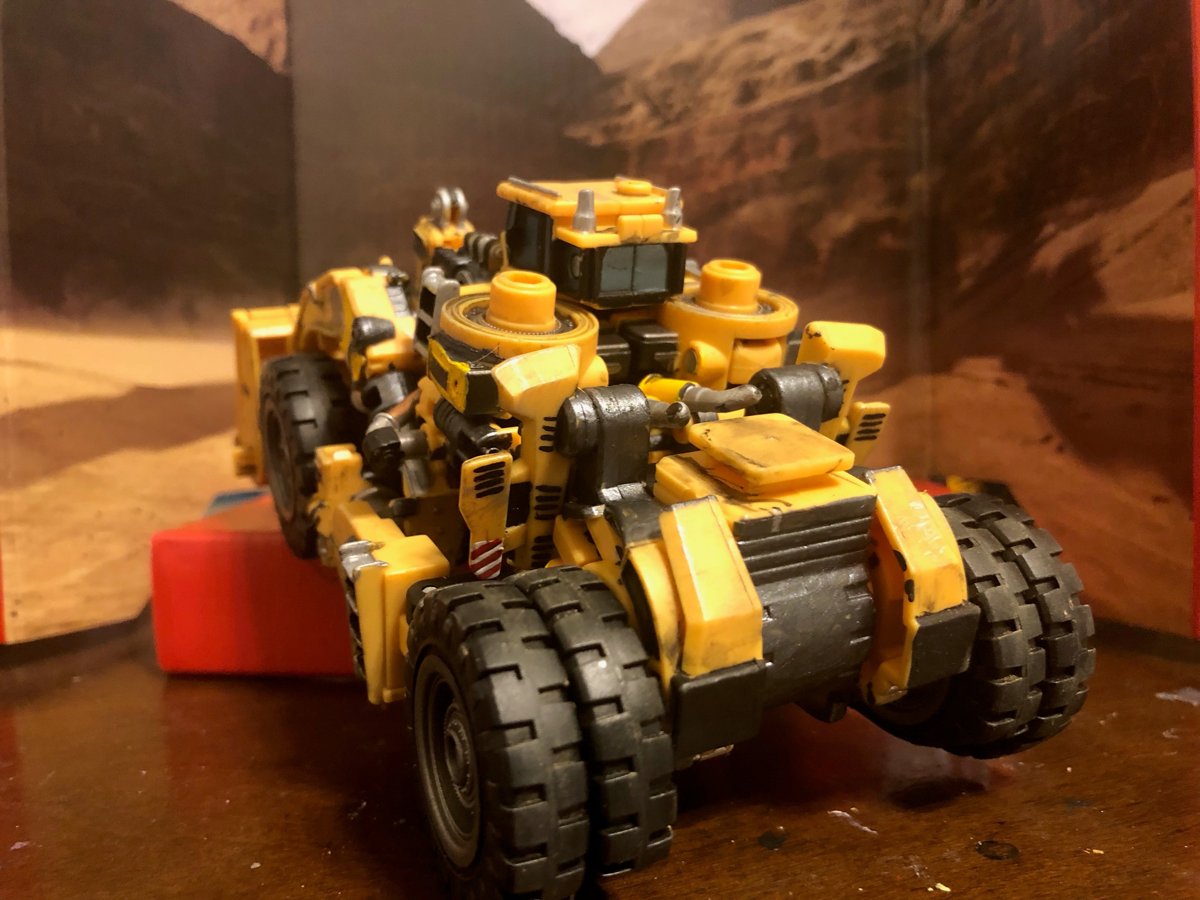 To finish up vehicle mode, I used panel liner to weather the main body of the excavator, and mud weathering on the treads to make them look dirty.