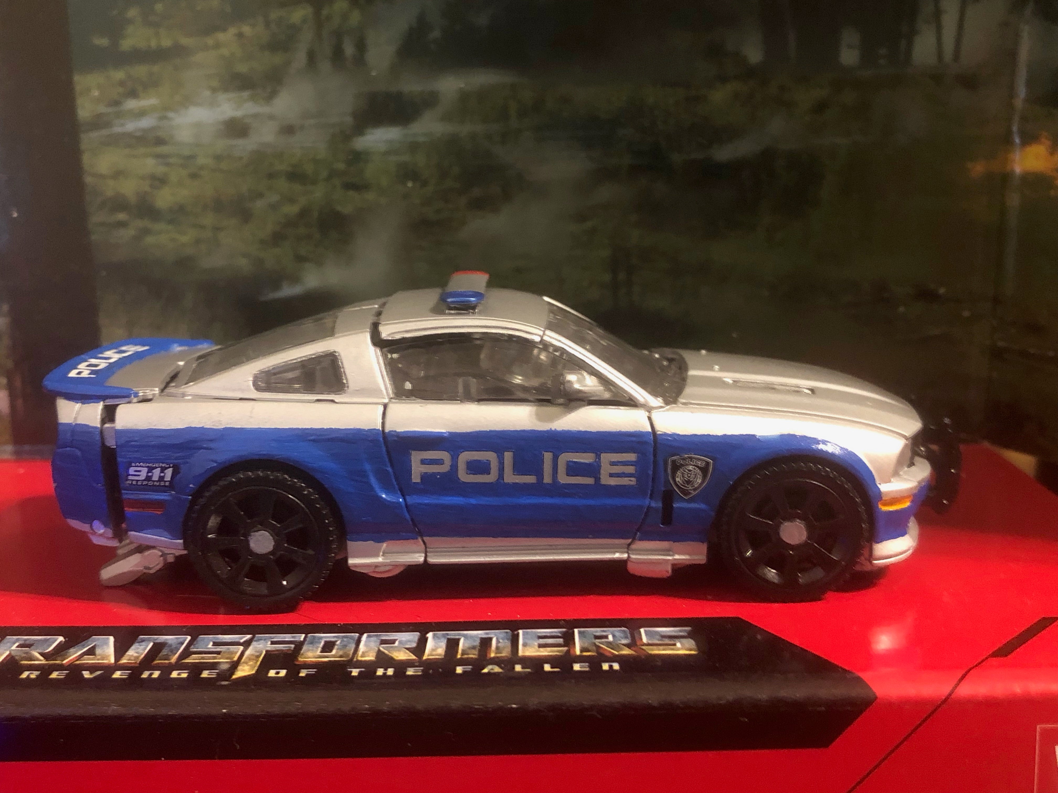 Here's that something different I was talking about a little bit ago! I had an extra Barricade from the Buzzworthy 2-pack, and I decided on the recon repaint from the 07 line. It's not an exact copy of the deco from that figure, but I used it as an inspiration.