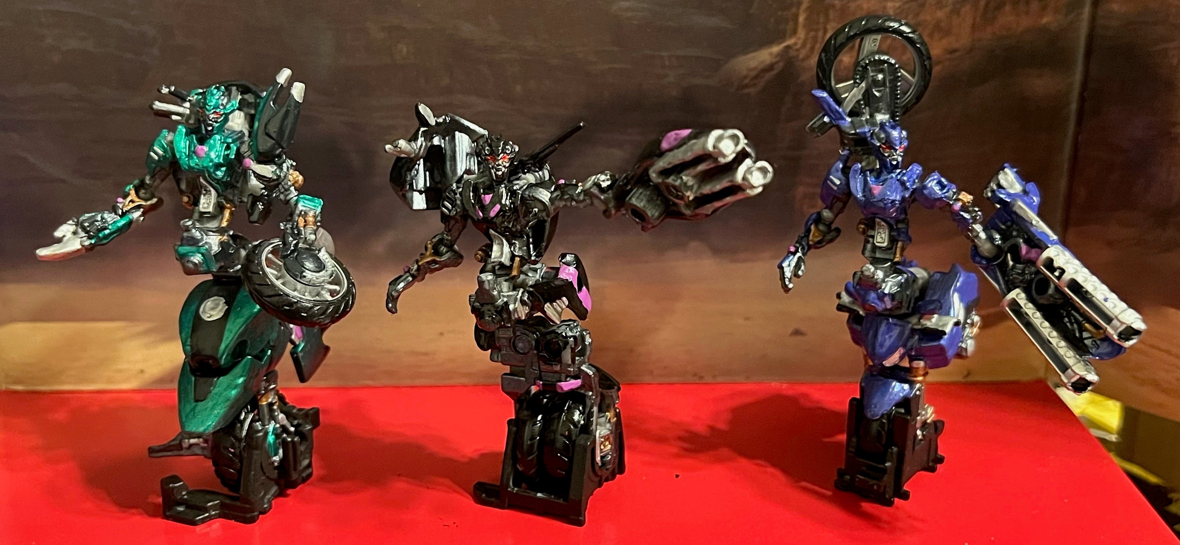 I’m on Spring Break and picked up the paint I need to finish the Decepticon Bikes and Overload, so hopefully they won’t be too much longer, the Bikes will be finished first.
