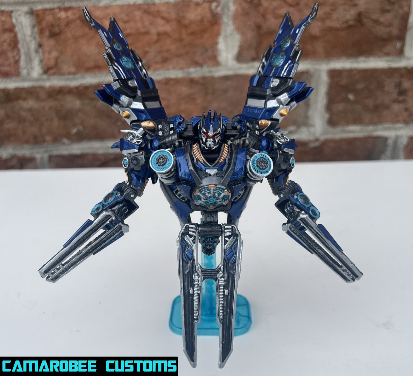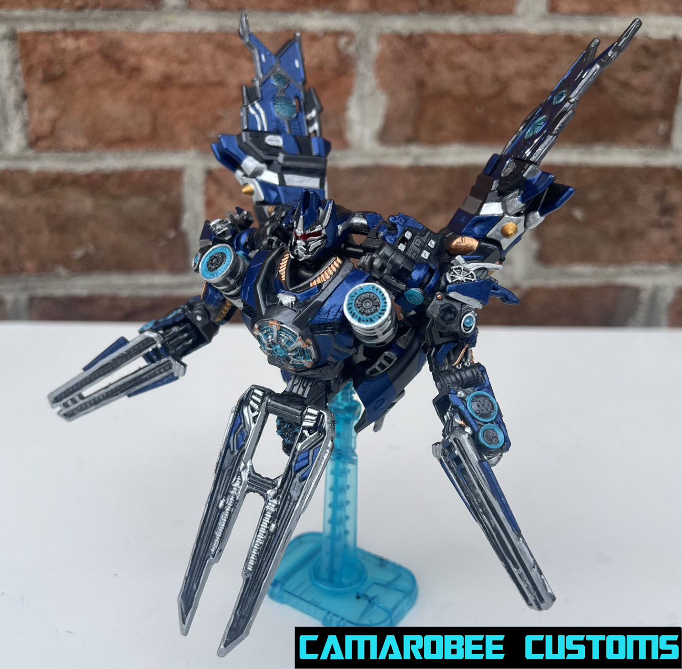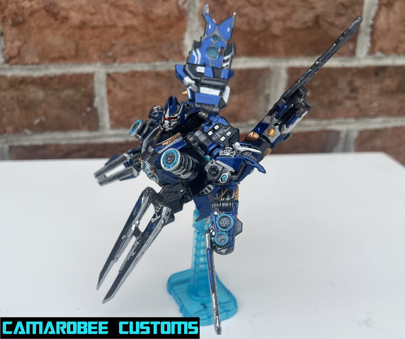 This is a project I've had on the back burner for a little while now, partially because of how many other customs of this guy are out there, but also because I didn't have as much of a plan for what I wanted to do. The detail that moved this project to the main burner was actually the silver trim around the windows - I really like how it looked and decided to get this project wrapped up. I added a lot of gunmetal throughout since ROTB prime has more gunmetal on him than the BB design, and for the blue I ended up mixing several shades of metallic blue together to get somethign I liked. Somethign interesting happened with the gloss coat too, where it deepened the metallic properties of the paint and leading to a really cool result. I used this same blue mixture on another custom you'll be seeing soon!
