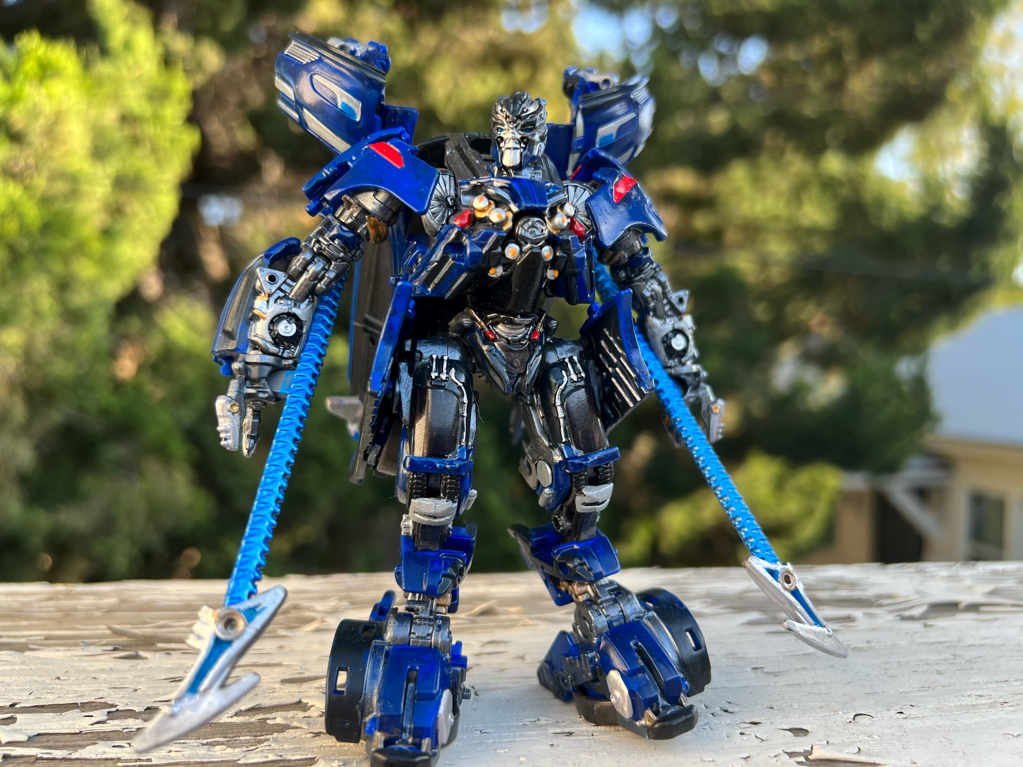 Maybe the biggest difference between this and my DOTM custom is the wash I applied - initially only to the head and swords, but I decided to expand it to the chest and legs. Generally I don't do weathering if the alt mode isn't weathered, but I'm glad I did here. I think it looks pretty good, and it helps differentiate it from my DOTM Sideswipe.