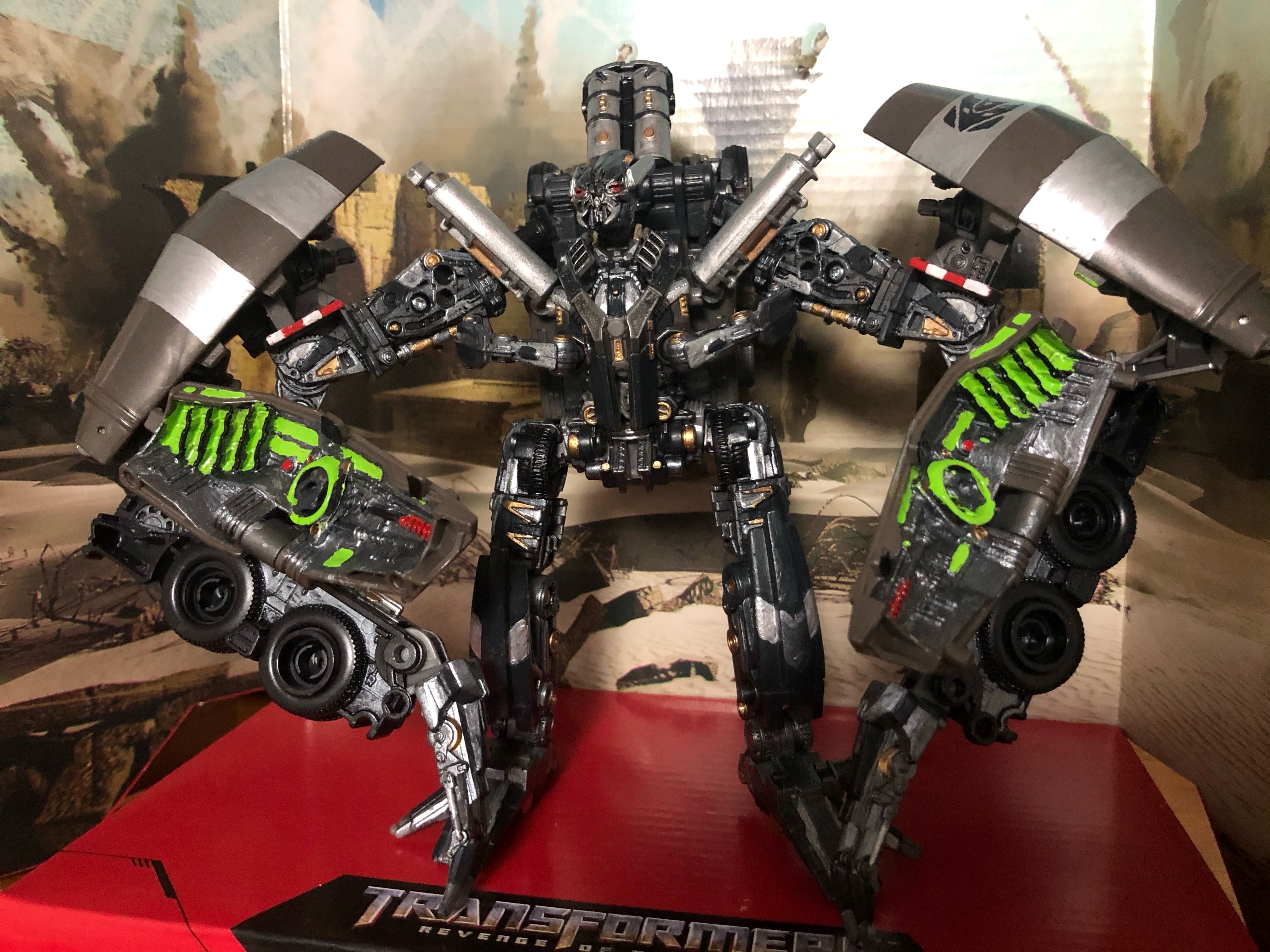 EDIT: Using some stickers from a 2009 ROTF sticker sheet as basis, I hand painted a Decepticon logo for the barrel!