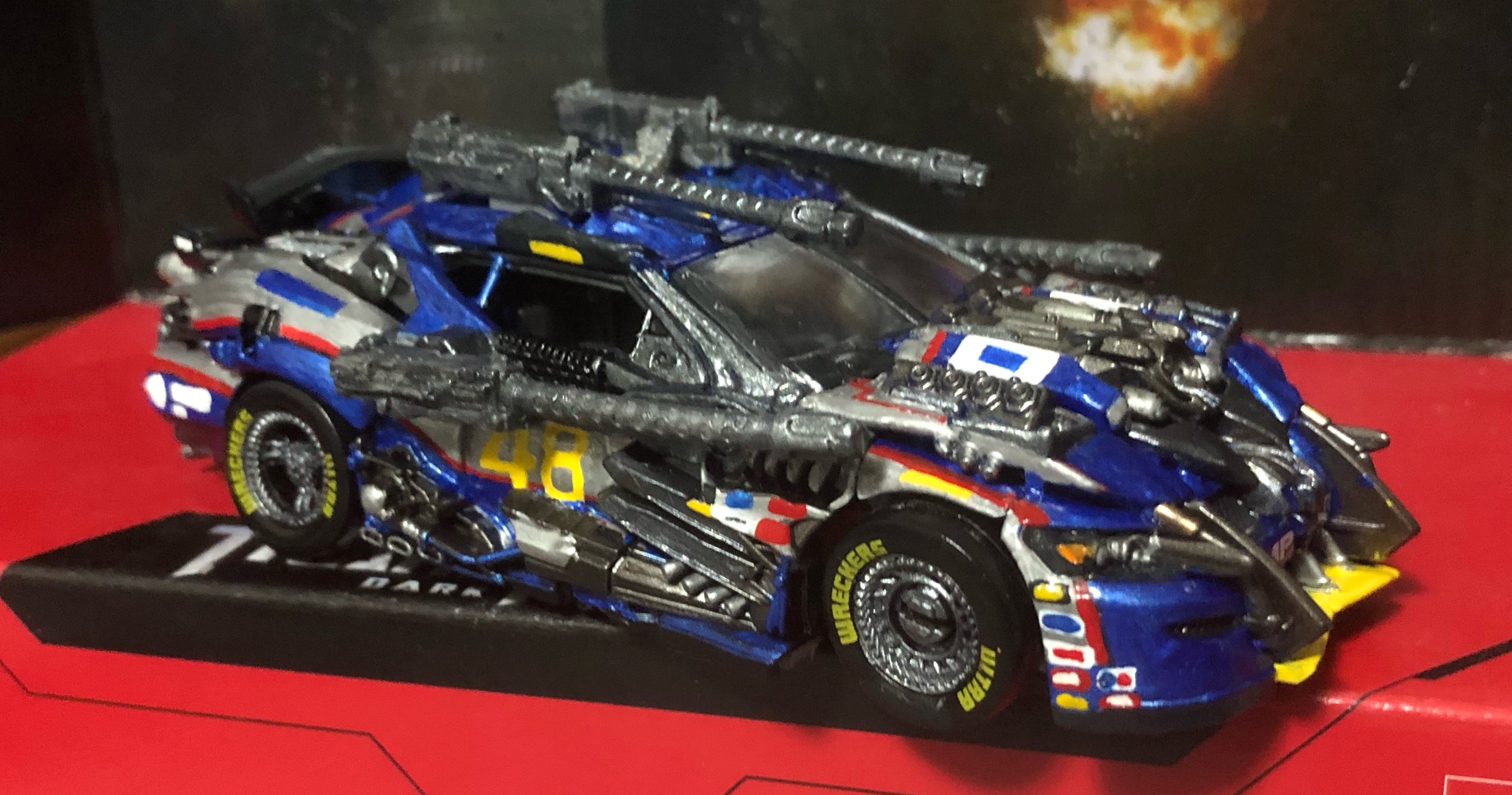 The other most difficult part of alt mode was the red, silver, and blue curved sections (between the machine guns and the spoiler). Getting everything to line up between the 3 pieces found on that area was tricky, and I found that painting it in robot mode made things a little easier.
