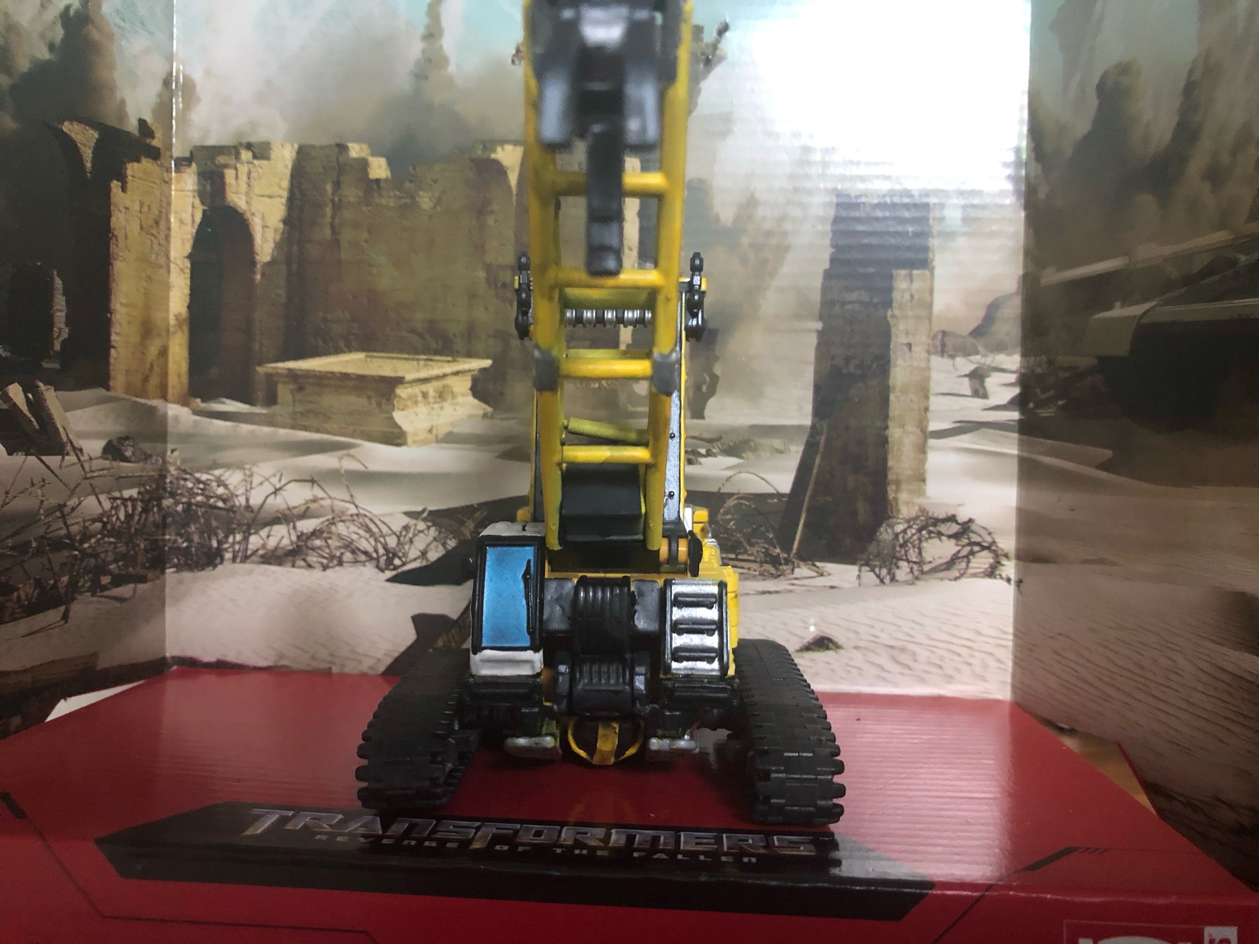 For vehicle mode, I went with a lighter yellow base coat to better match the on-screen vehicle. I wasn't sure how to feel about that at first, but I like it and I think it adds some more variety to the Constructicons who have a lot of yellow going on. I painted the cab section in white, again based on the vehicle we see in ROTF, and added details primarily in silver and a flat black. The crane arm and the support thing behind it should technically be solid yellow, but I think I struck a good balance between the overall yellow color and detail work.