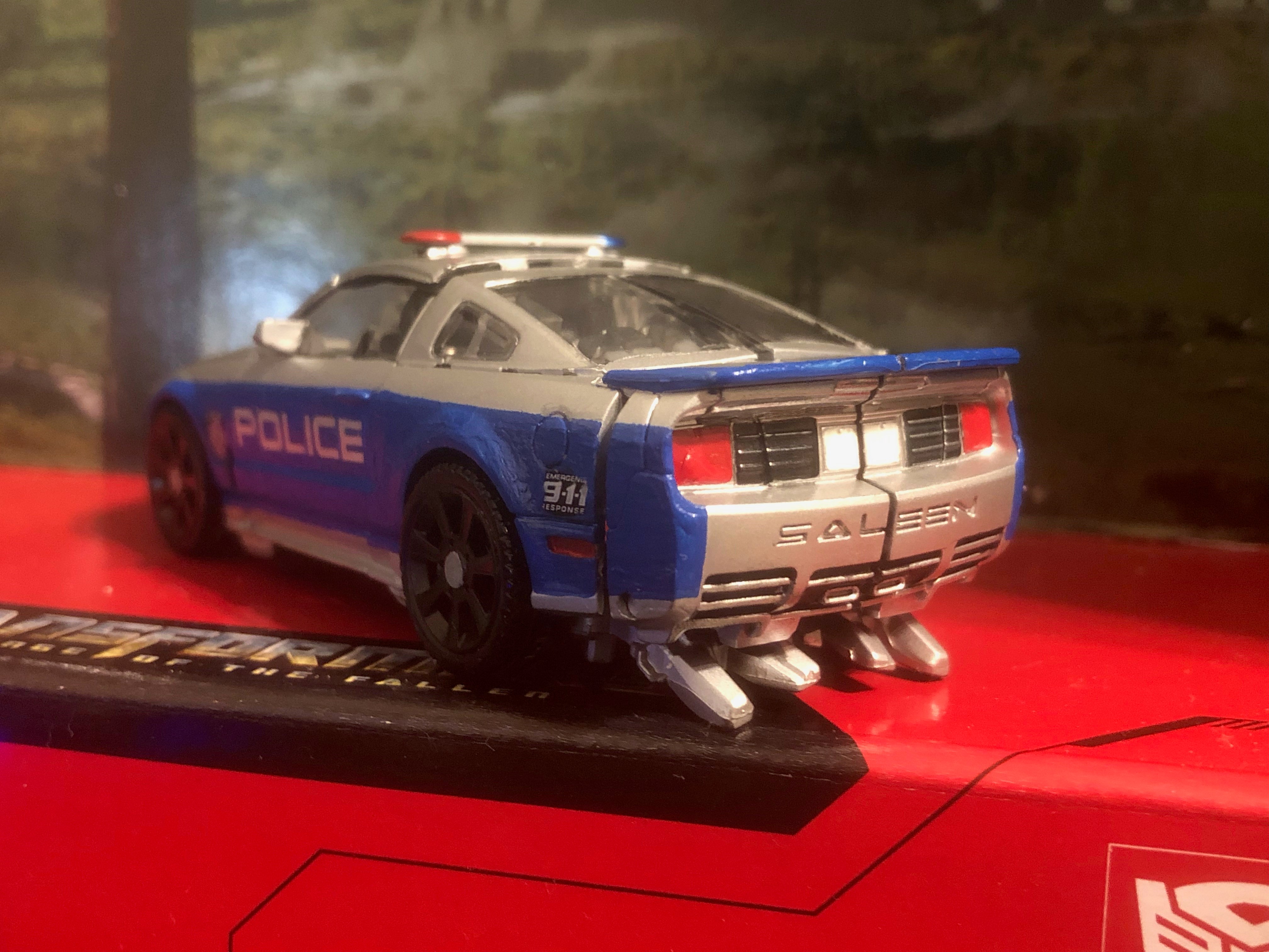 Here's that something different I was talking about a little bit ago! I had an extra Barricade from the Buzzworthy 2-pack, and I decided on the recon repaint from the 07 line. It's not an exact copy of the deco from that figure, but I used it as an inspiration.