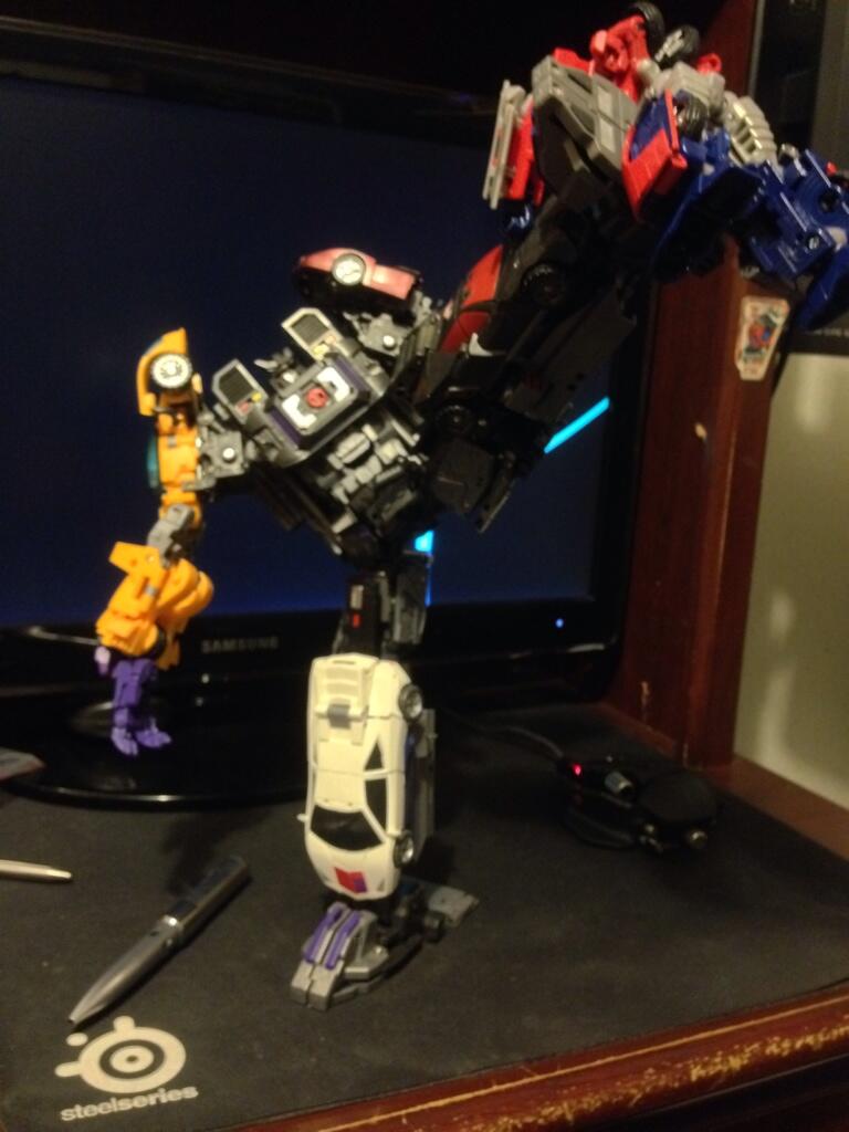 Then, I saw the replacement, which has the short tab molded that way, and I figured it must have been intentional. Only once he was combined in gestalt mode did I see why they may have done what they did.