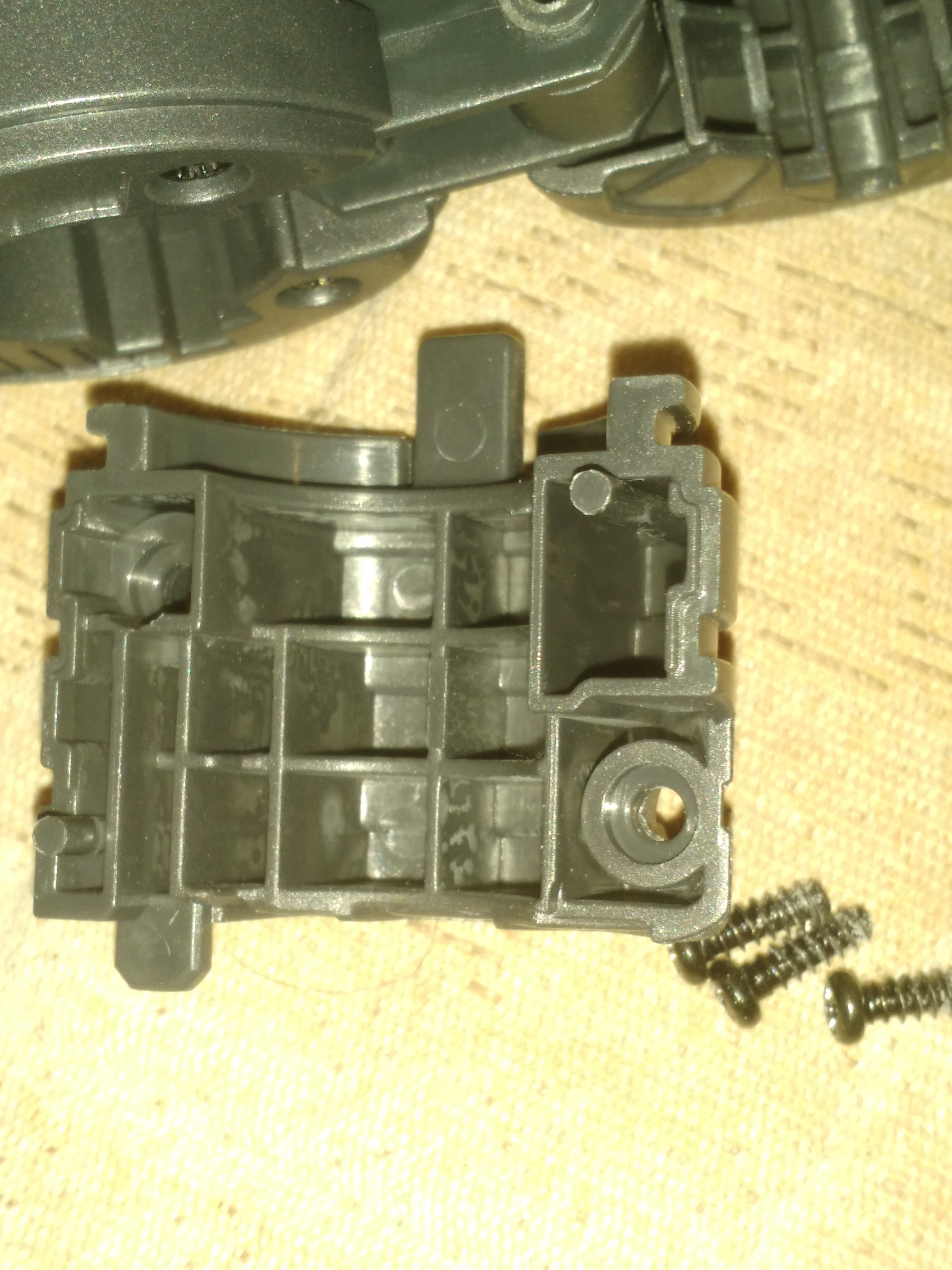 With all the hubbub about qc issues on the new Megatron, I decided to investigate and find a solution for as many of the problems as I can. I restore and repair toys on the side for resale (if I can force myself to part with anything) I will walk you through some of the issues and what I've done to fix them, with pics where I can. the only thing I can't cure on this figure is most of the paint chipping. You can always take megs apart and spray him with clear coat, however this will make his other main issues even worse, so I don't recommend it. Bottom line: if you want to play with him at all, be prepared to loose paint. given that hes grey plastic underneath, its not too bad.