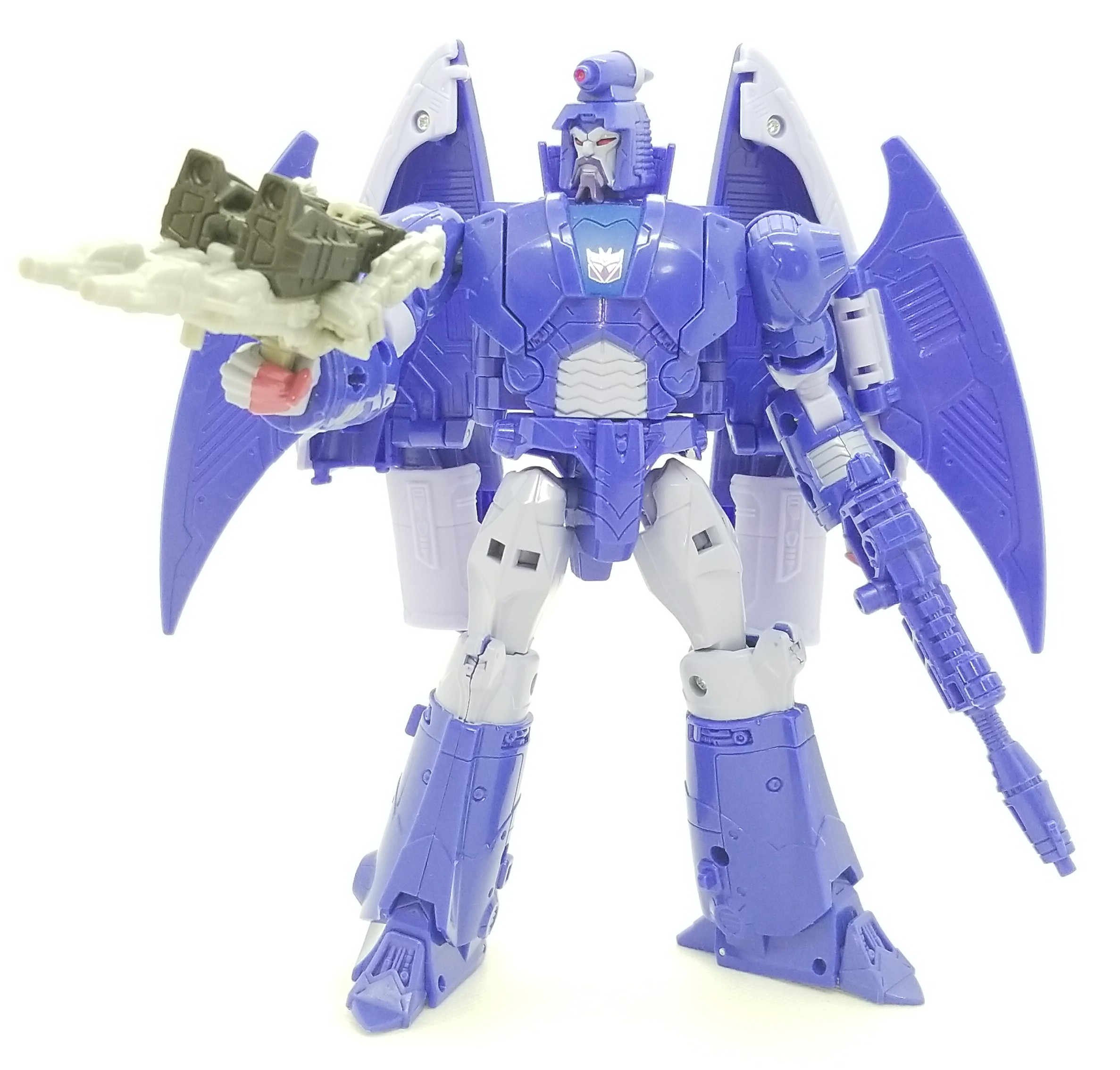 Seige Fracas, made from parts-swapping Seige Caliburst, Blowpipe and Aimless, plus two types of orange paints for the face. Even if you don't use the other two Targetmasters (which I'm planning on turning into Seige Spinister's Targetmaster Juniors), I believe it's a cheaper way to get a more accurate Fracas than by getting the version that came with Seige Skywarp?