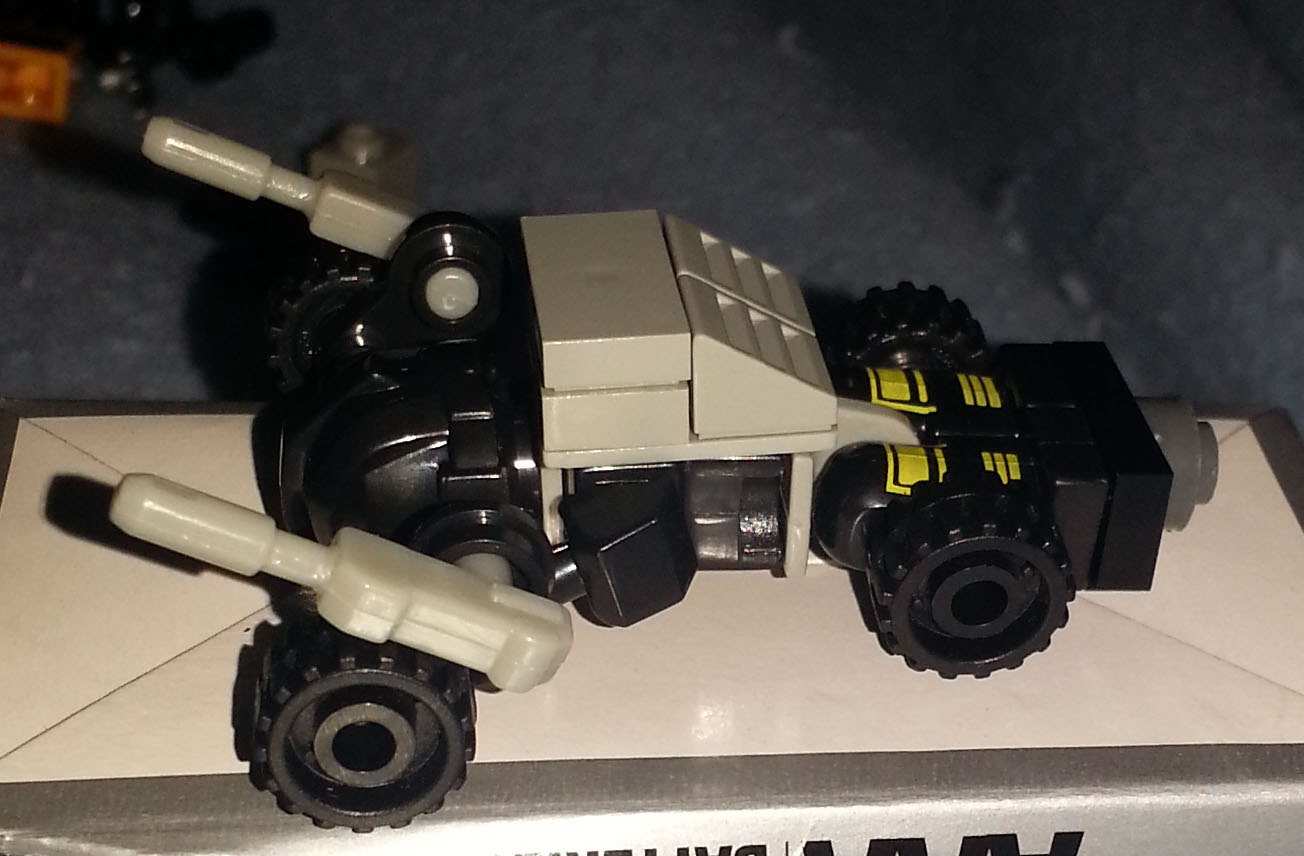 I've bought a few extra kickbacks for their backpacks to update my preview series minifigs, and I have some other spare minifig parts lying around, so I whipped up this guy. pictures are a bit dark because I haven't figured out the phone camera quite yet but here's two alt mode pics and a robot mode pic of Evil Decepticon Finishline: