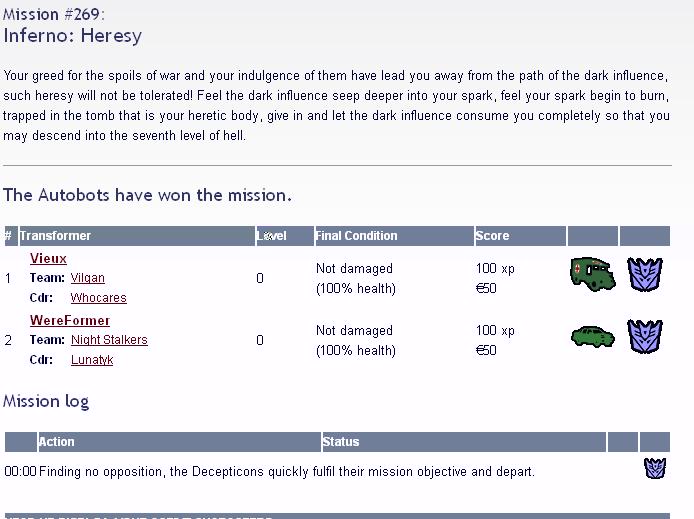 Here is also something interesting. There are no Autobots, but they some how won the mission. This was also a mission I was supposed to have been in.