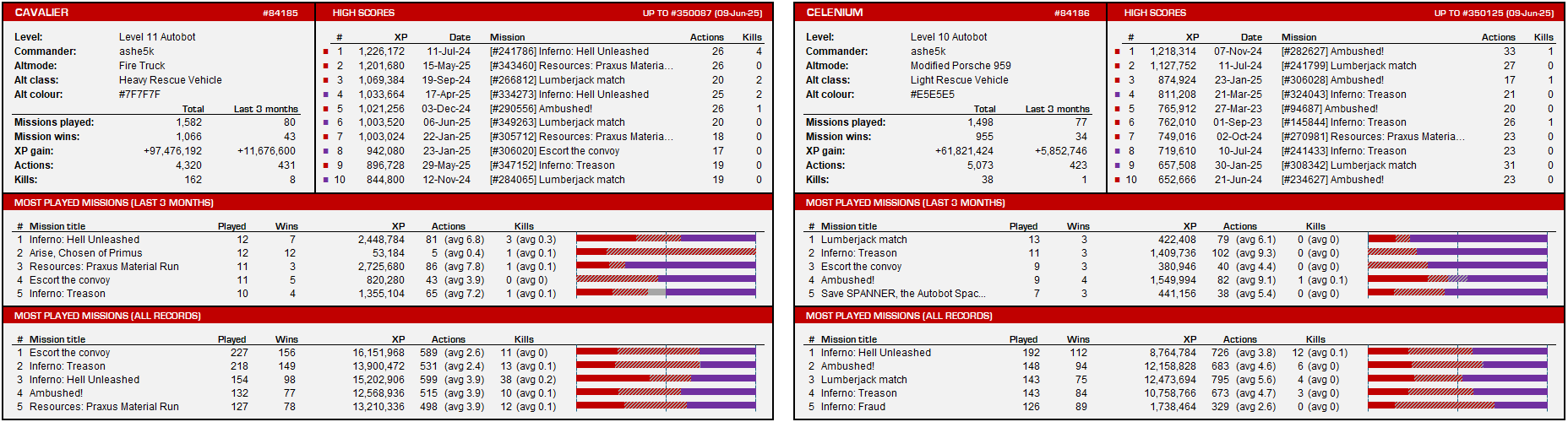 Interesting to see that the 'Cons have a slight edge in overall missions, but it's mostly concentrated on the sheer number of L11 fights happening at the top of the table.