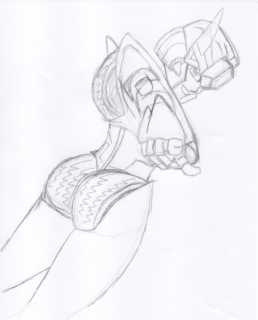 One more picture today. I plan to at some point maybe clean up the line art to color it in, probably on my computer. Not that I'm good at that, but it'll look better than colored pencil I think. I also plan to do a shaded version of the paper drawing, but needed the line art scanned first for the coloring. I'm not satisfied with it, but to make it better, I'd have to start from scratch again, something I am not opposed to doing, but, yeah. Rambling.
