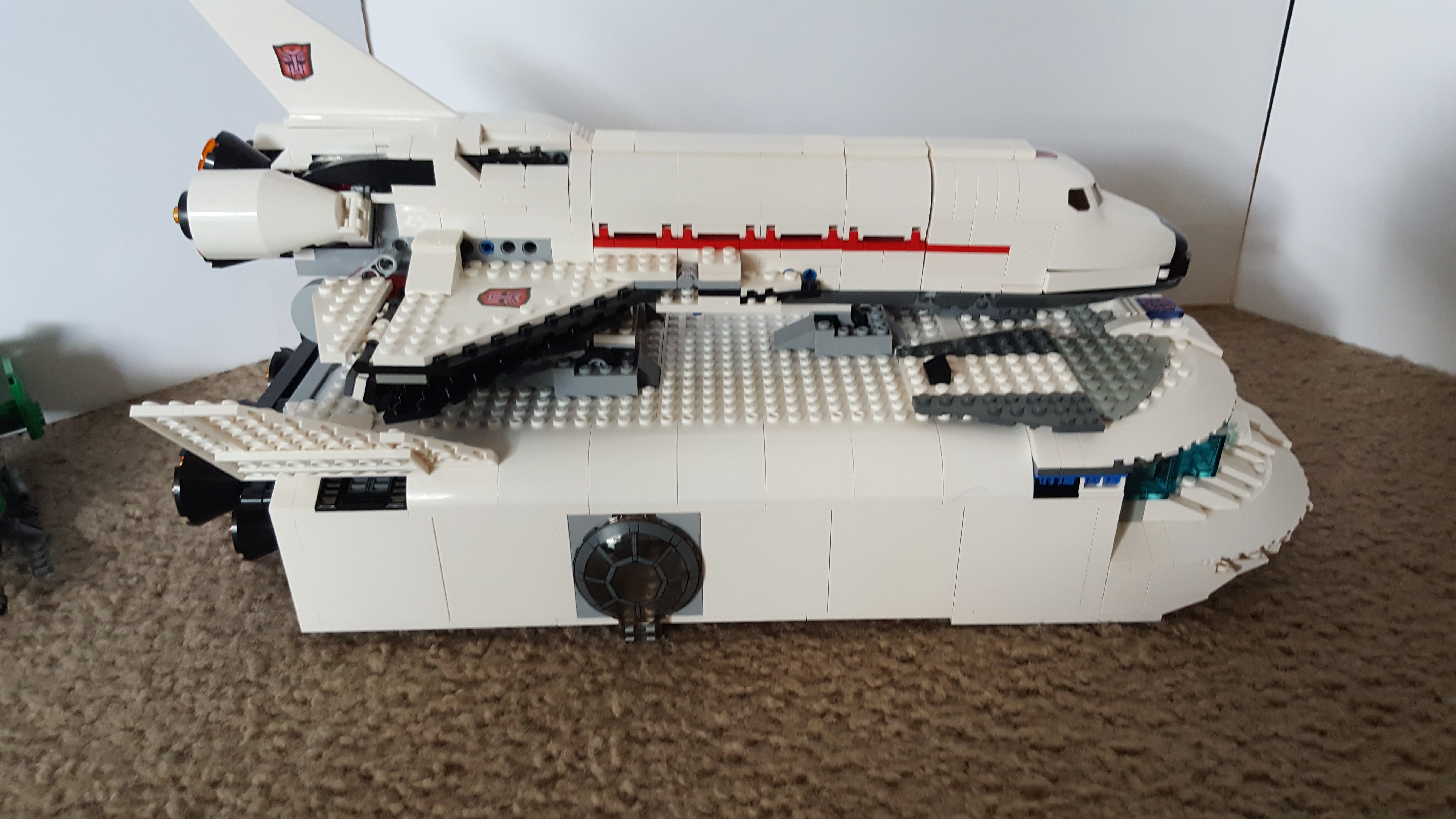 This all started with the shuttle. I took a Lego City Space Shuttle and extended it and built Sky Lynx out of it. He comes complete with a pilot (cant see him in the pics), working mouth (with teeth, that was hard!), working cargo bay with a boom arm and satellite, and is fully transformable without parts forming. Once he was done the idea of the Defiant set came into my mind and it was a must do!
