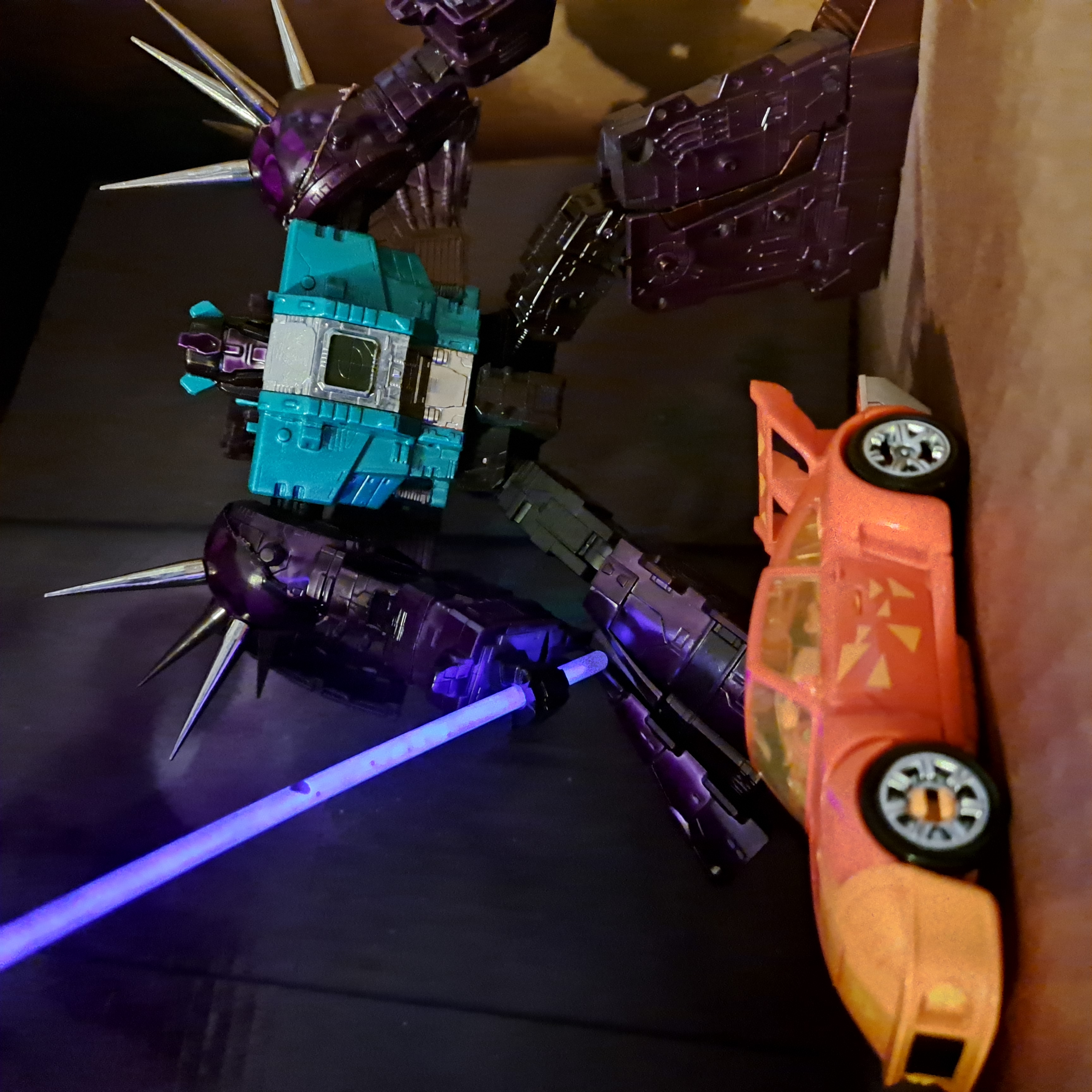 Hmmmmm...are you going to repaint him into Energon Six Shot, but leave a purple Death's-Head-Cylon on each shin?