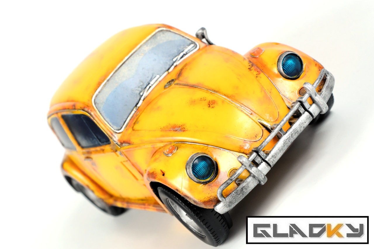 My custom was inspired by those old cars, that spend decades in somebody's barn and one day are discovered in a pretty rough shape. After seeing first trailers of Bumblebee, I really wanted to do something like that with this guy. Old VW Bug was a perfect candidate to be aged and damaged a bit, especially in the context of movie. Cinematic version of Bumblebee Was mostly dusty but not too damaged, however I have decided to go all the way with this project and this is what I came up with.