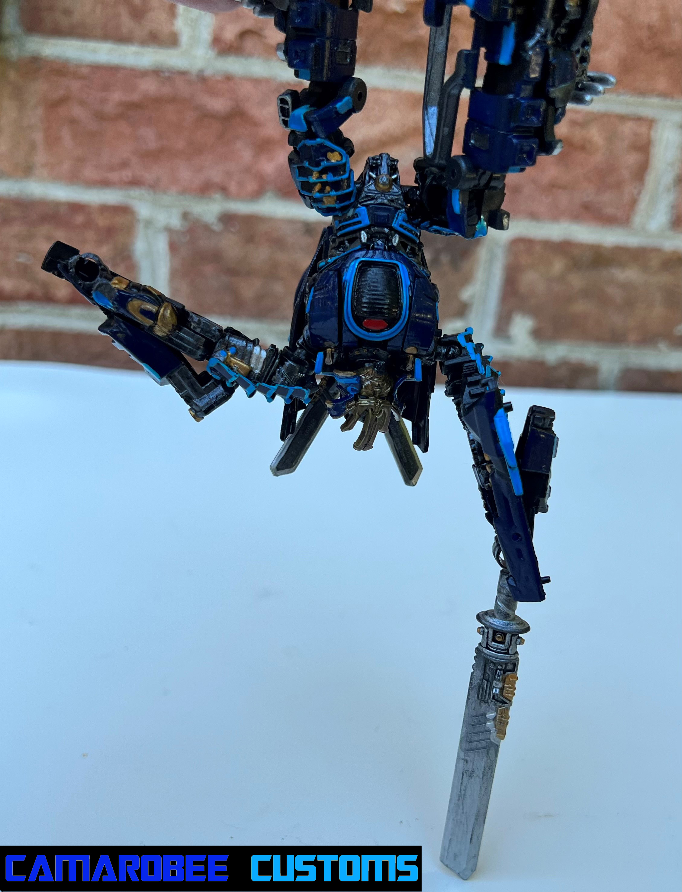 Maybe the biggest difference between this and my DOTM custom is the wash I applied - initially only to the head and swords, but I decided to expand it to the chest and legs. Generally I don't do weathering if the alt mode isn't weathered, but I'm glad I did here. I think it looks pretty good, and it helps differentiate it from my DOTM Sideswipe.