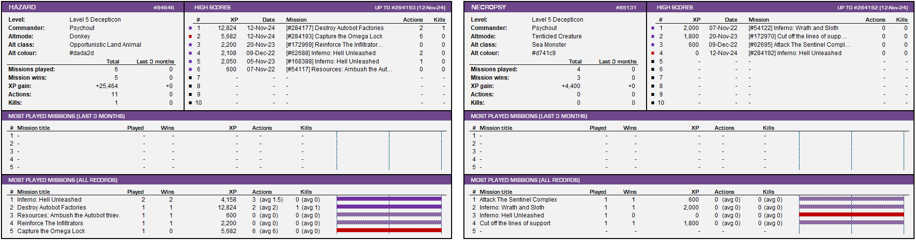 But also, for the lower level missions, look at how many are won by default because only one side joins - only a tiny fraction end up in an actual fight. That generally means that no other players of the right level are around at that time, or that the player who generated the mission joins because they have to - so they just get the basic XP for the win - but any others around will pass over it in favour of a more lucrative mission if available. Is it any wonder that the low level game is such a joyless, grindy slog?