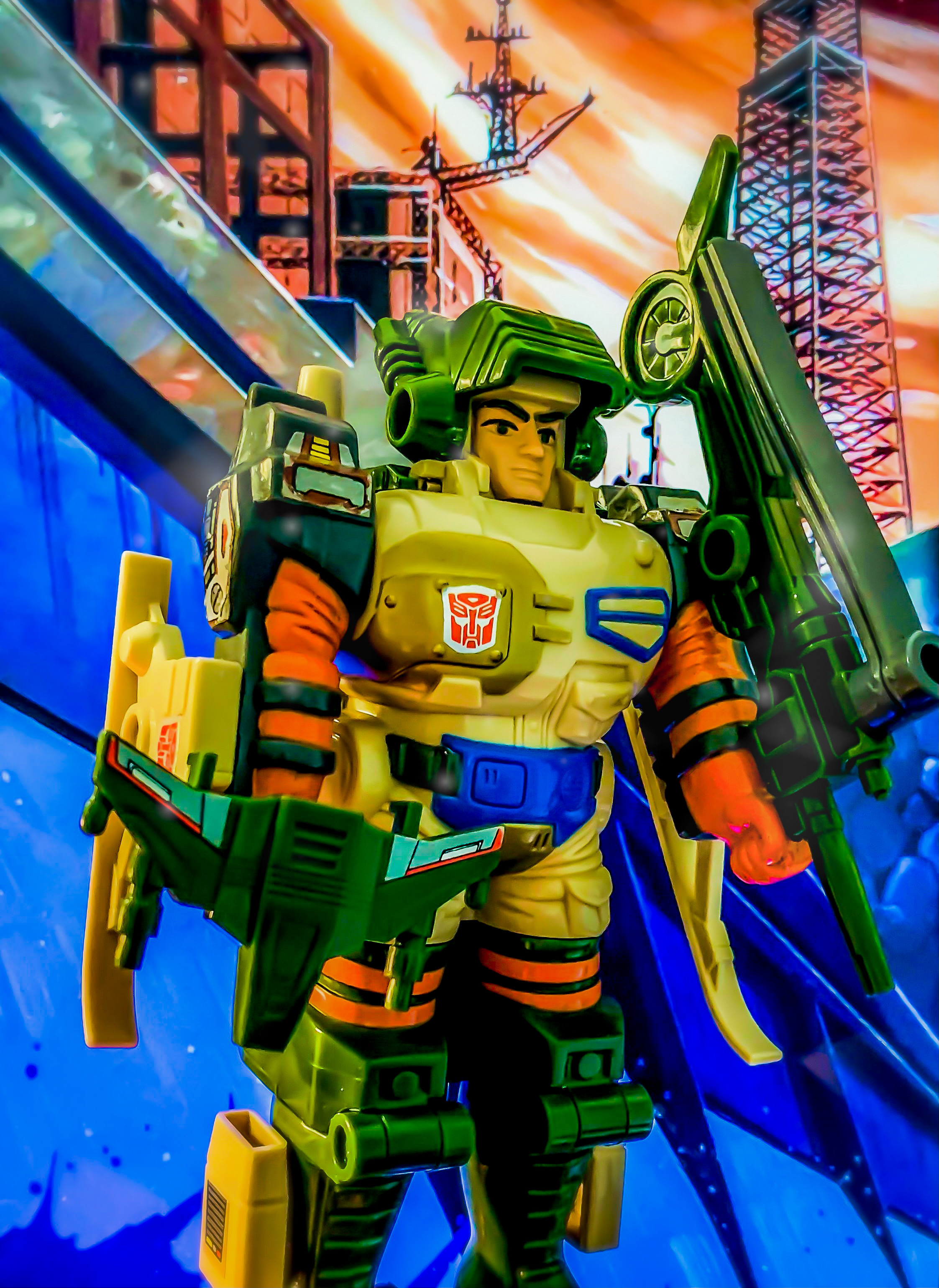 Thinking of Autobot Pretenders, I got a favorite of mine out on the desk today — and I really gotta thank Kanra for helping me see how awesome Crossblades really is.