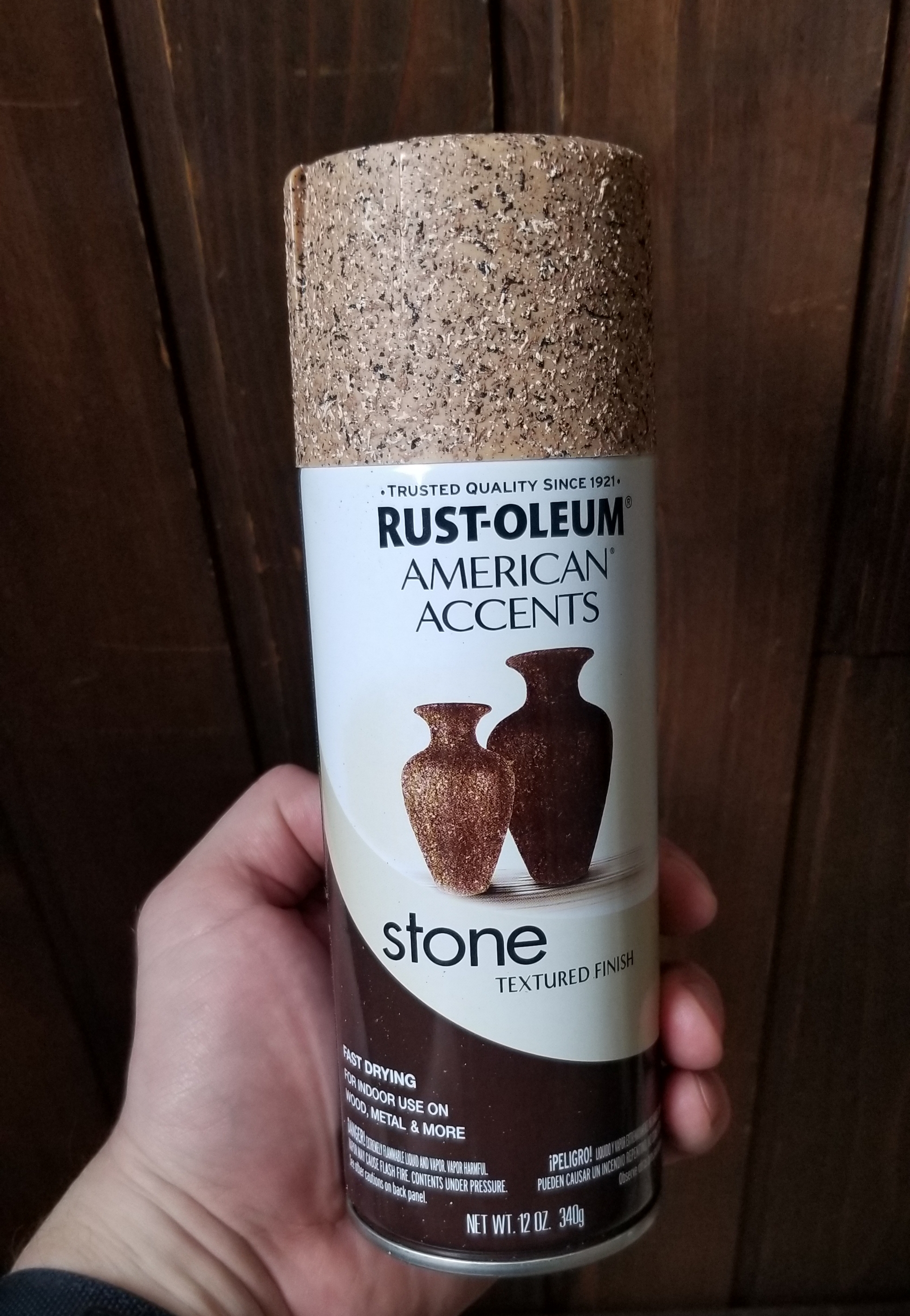 The first coat of Rust-oleum took like a champ and was dry to the touch in less than 2 hours. Gave it a little more time than that and spent the day adding a few different color coats. I used Rust-oleum Satin Warm Caramel and Satin Nutmeg to give it some contrast.