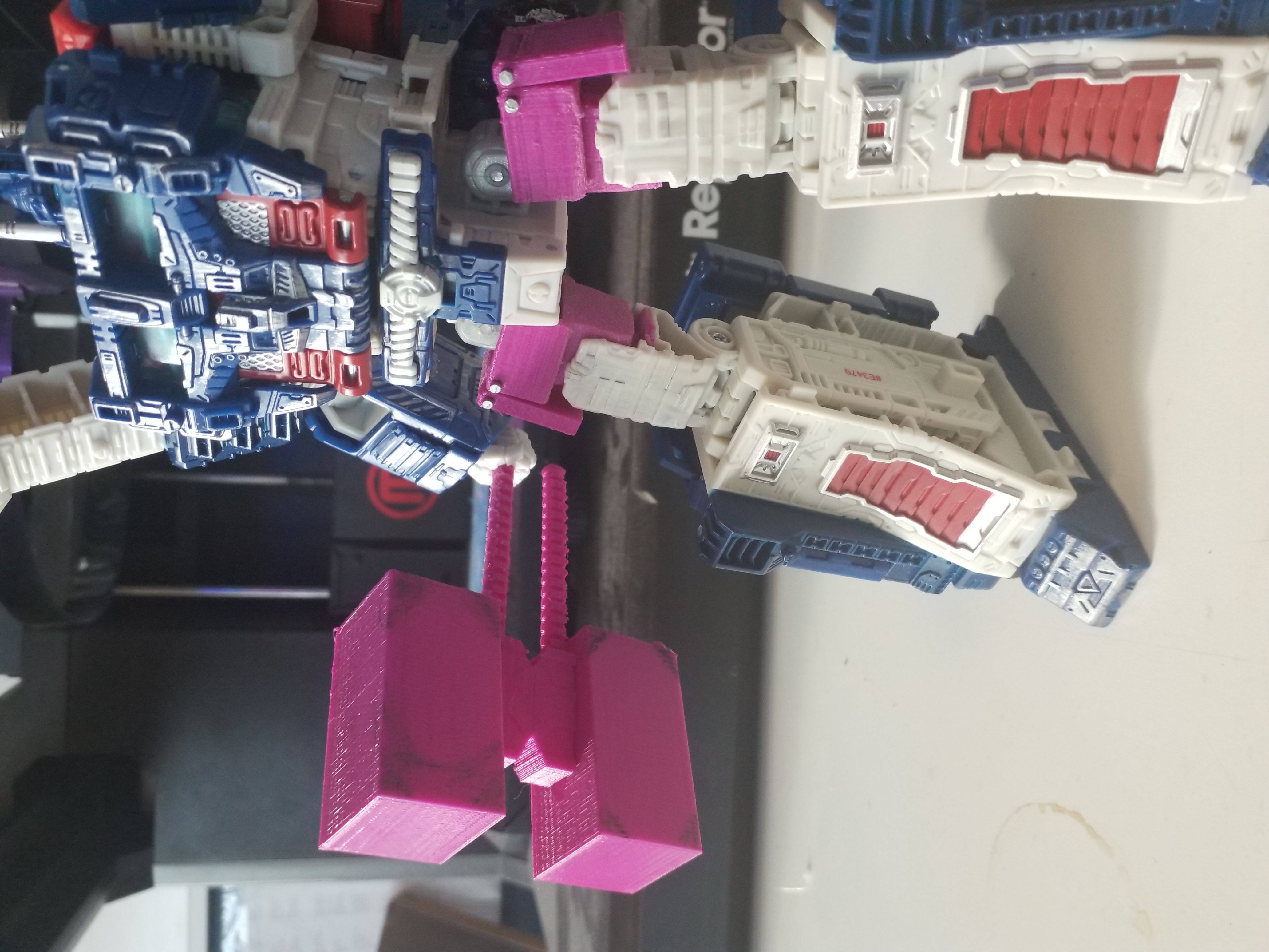 Latebrus-K wrote:This looks like darn good fun. Works excellently with the siege themes of reassembly and weaponizing. If I'm reading this correctly, the warhammer would be MASSIVE for either robot mode, which is perfect! I'm guessing this would need to be 3d printed as a product, which could be cost prohibitive, at least for plebs like me