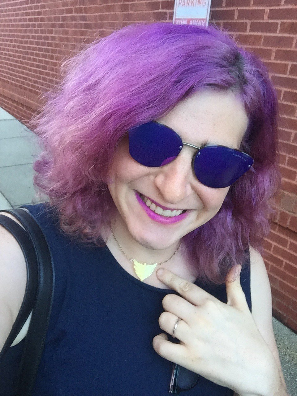 Here's a recent pic of me (I have a few from Pride in June, but it was before my hair was fun and purple).