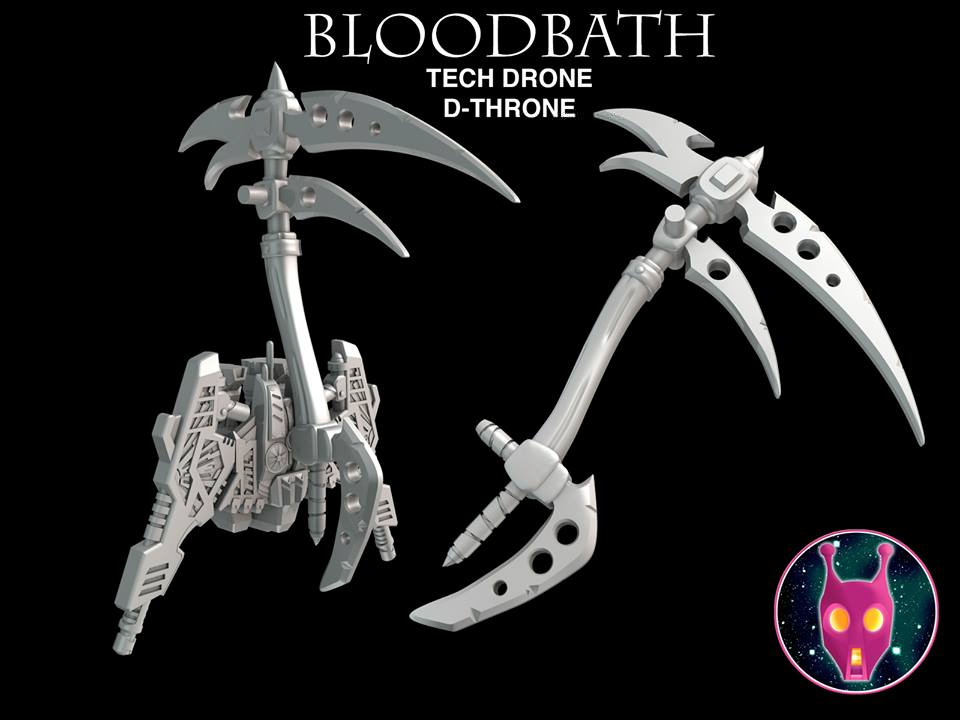 Today Play With This Too released renders of the weapon and Tech Drone for Bloodbath, as well as a picture of the prototype of his weapon. Very cool, lots of 5mm and 3mm holes for building!