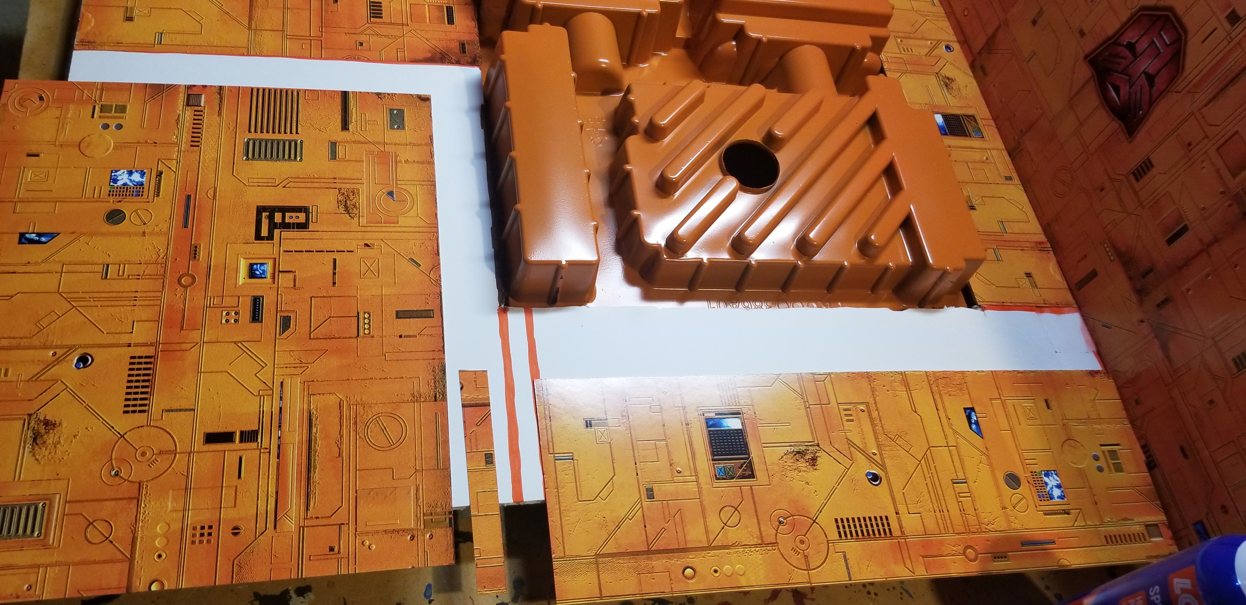I measured the panels in such a way that the four corner seam will be behind the Teletraan-1. It should provide for a slightly more seamless look.