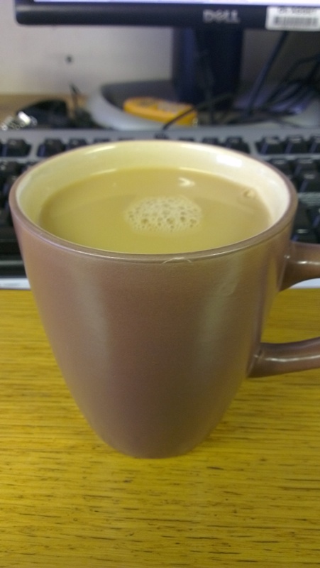 The formula: one mega coffee before leaving for work, then an iced coffee on the way, then the still very cold tea to wash out the coffee. One bottle of frozen water (melting fast) until lunch break, then another freezing coffee and very cold water (heating up fast) to last until hometime. Good home food and just room temp water after that.No soft drinks or alcohol.