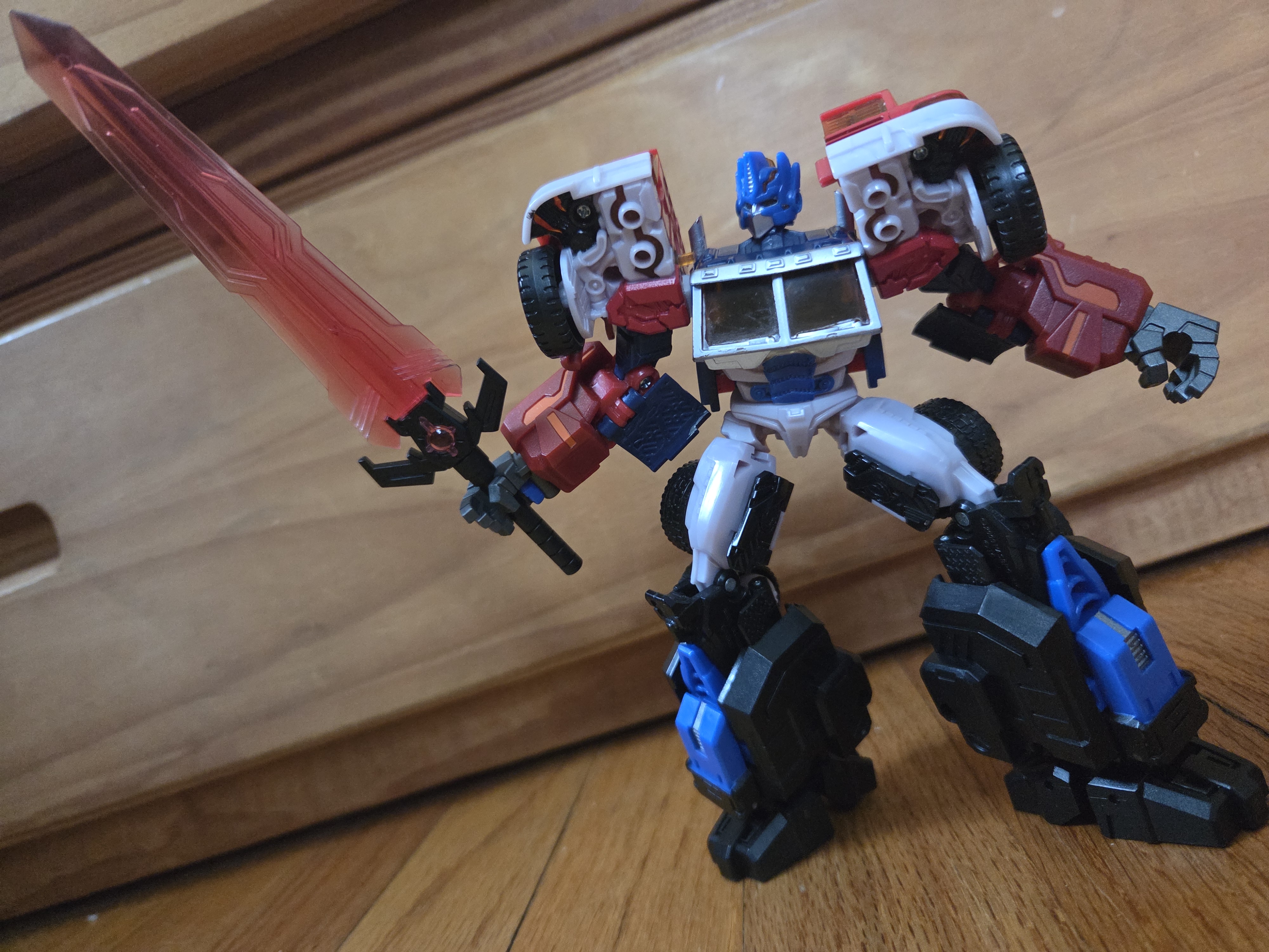 Sure, there's no articulations and the gimmick works only 1 time out of 10, but I really love his looks and it's fun to have it alongside his brother, Optimus Prime!
