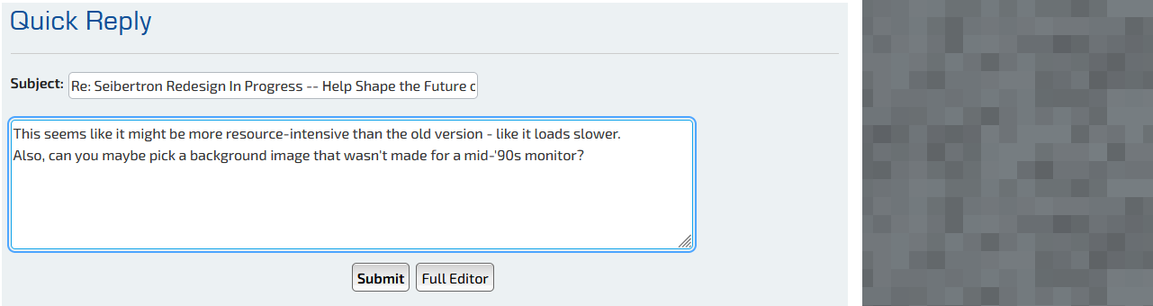Seibertron wrote:First Gen wrote:Ohhhh baby, now you're TALKING!!! Love all the ideas listed. I think you're on the perfect track to really make Seibertron.com the premier TF site.